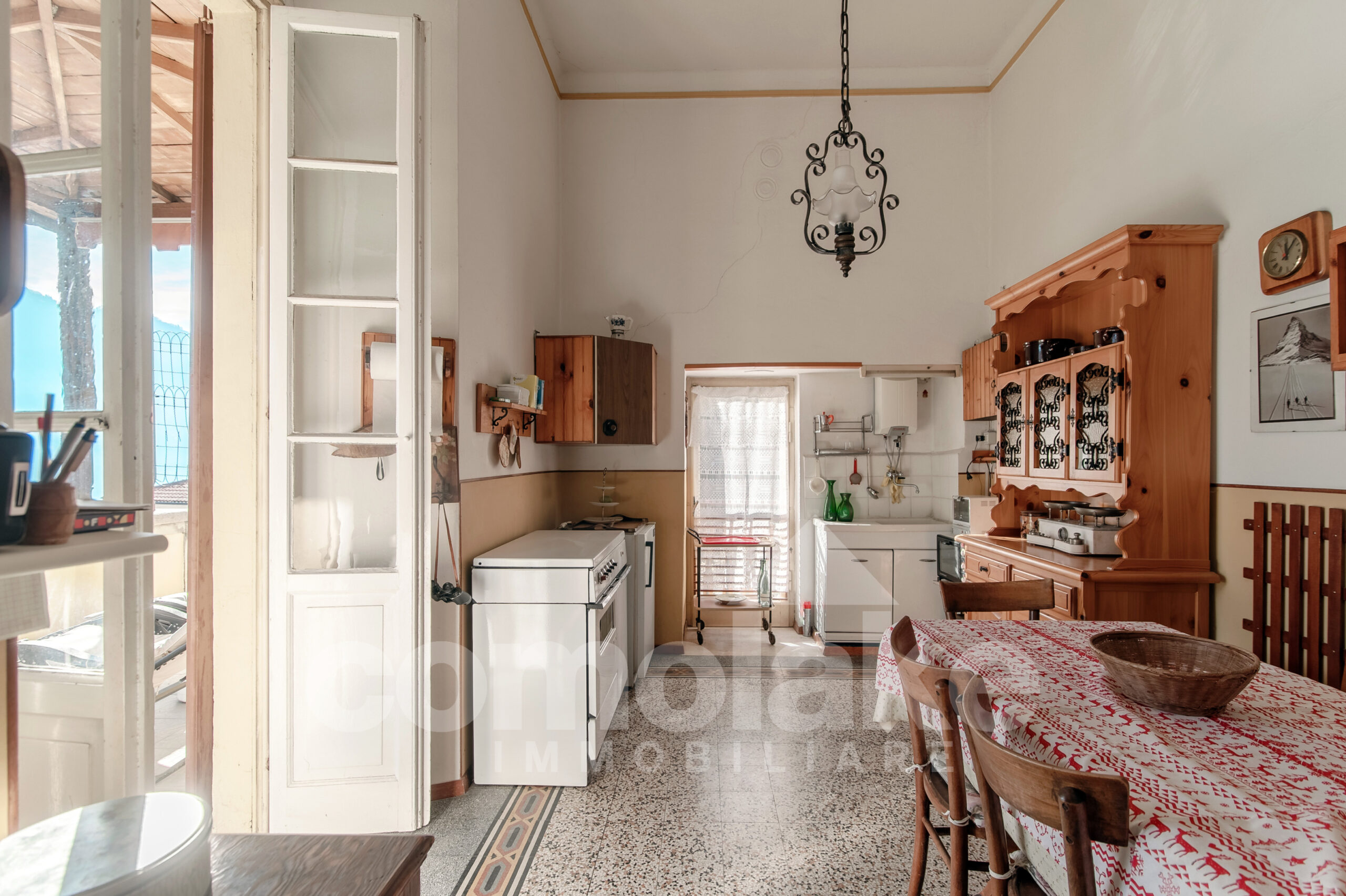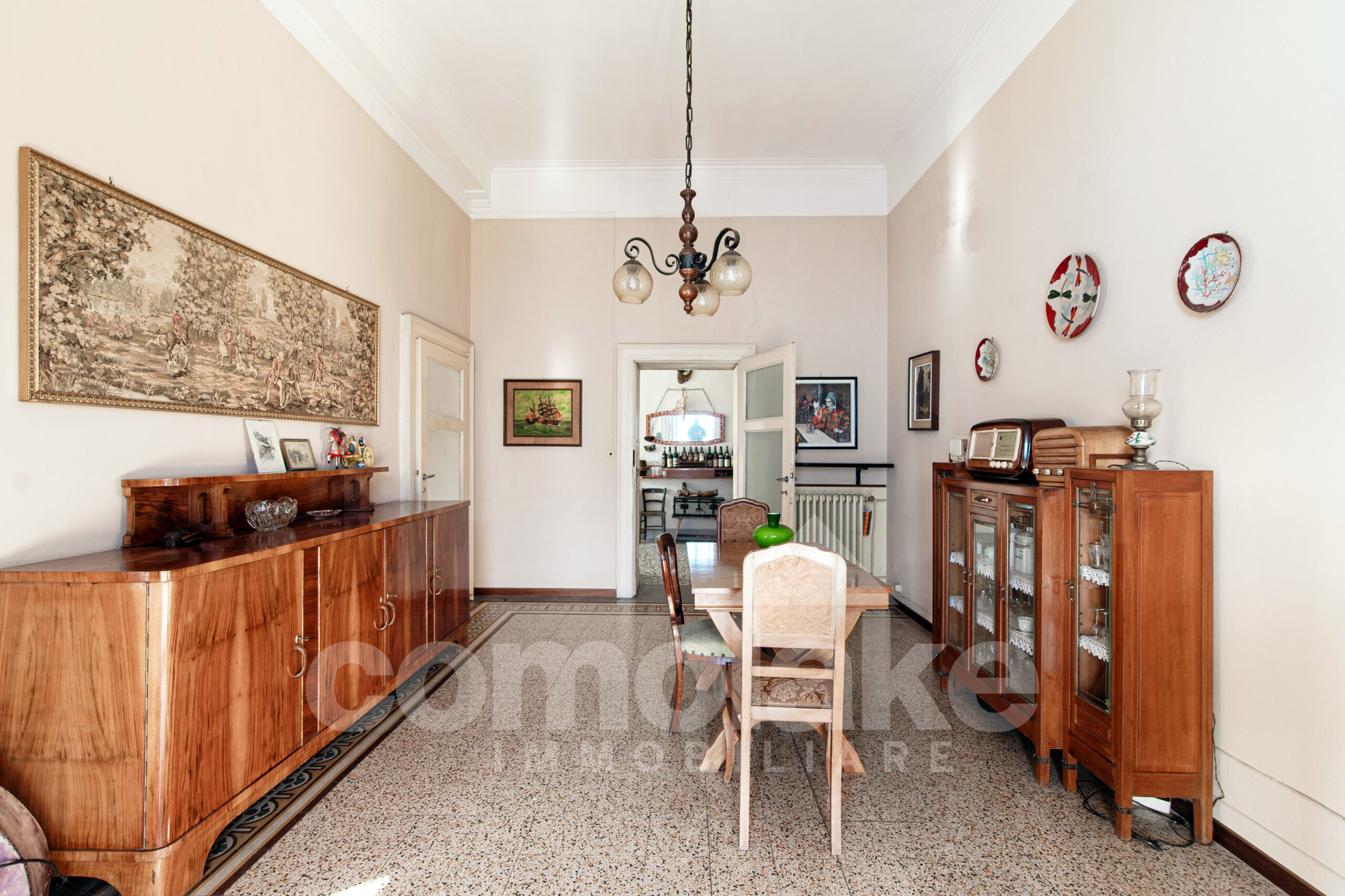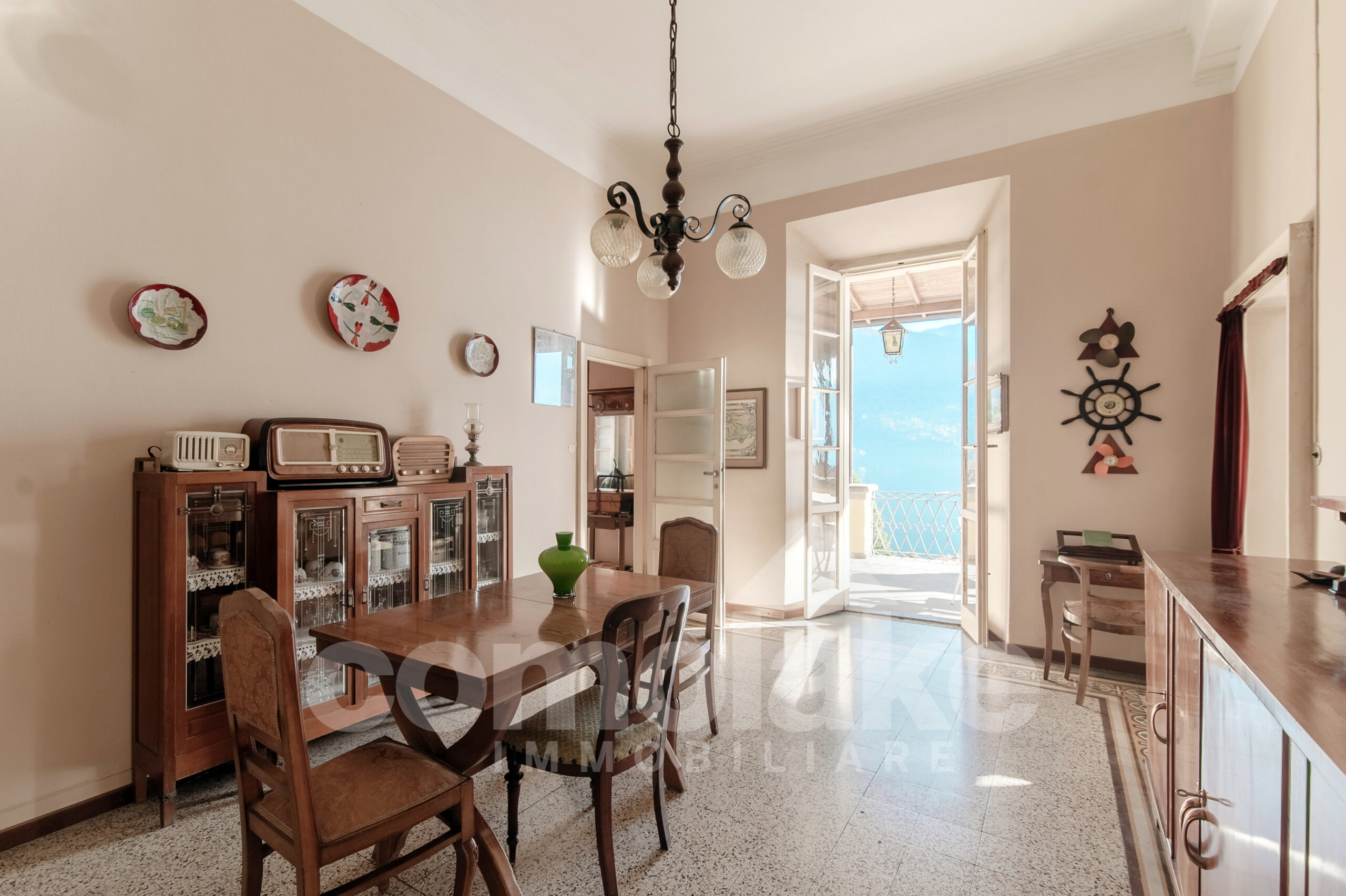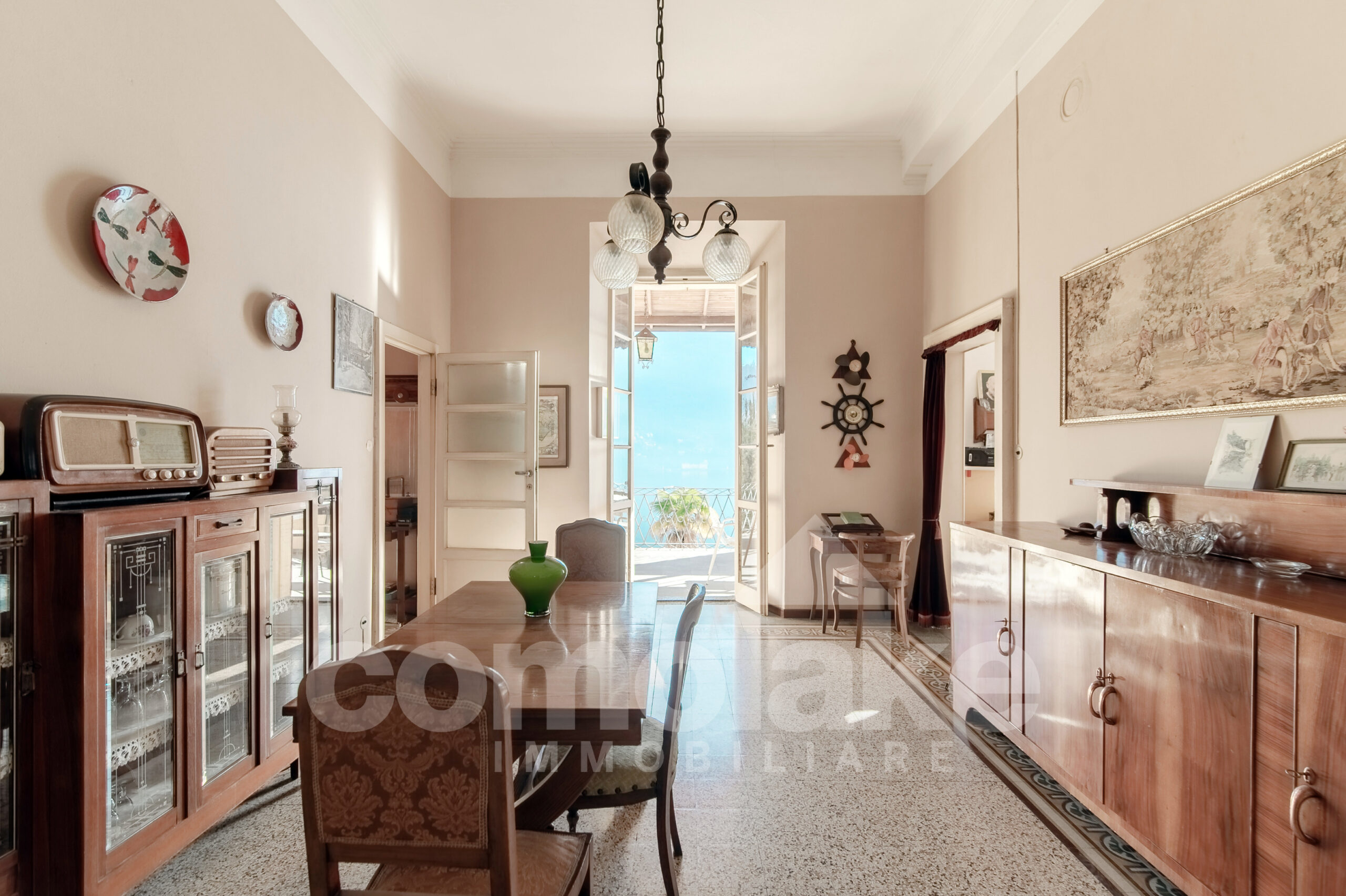 The historic house with a terrace and garden in Moltrasio is located a few steps from the centre of Moltrasio and the shore that can be reached on foot by a cobbled road.  The centre offers shops for daily services and interesting typical restaurants and bistros. On the shore, there is a beach for summer and the possibility to organize boat trips. The view from the magnificent terrace and the garden of the property enchants, the view that stretches over the lake passing from the villa Passalacqua to the shore with the historic gardens of the villas on the lake. The original volumes and heights of the building have been well-preserved and give value to the house.