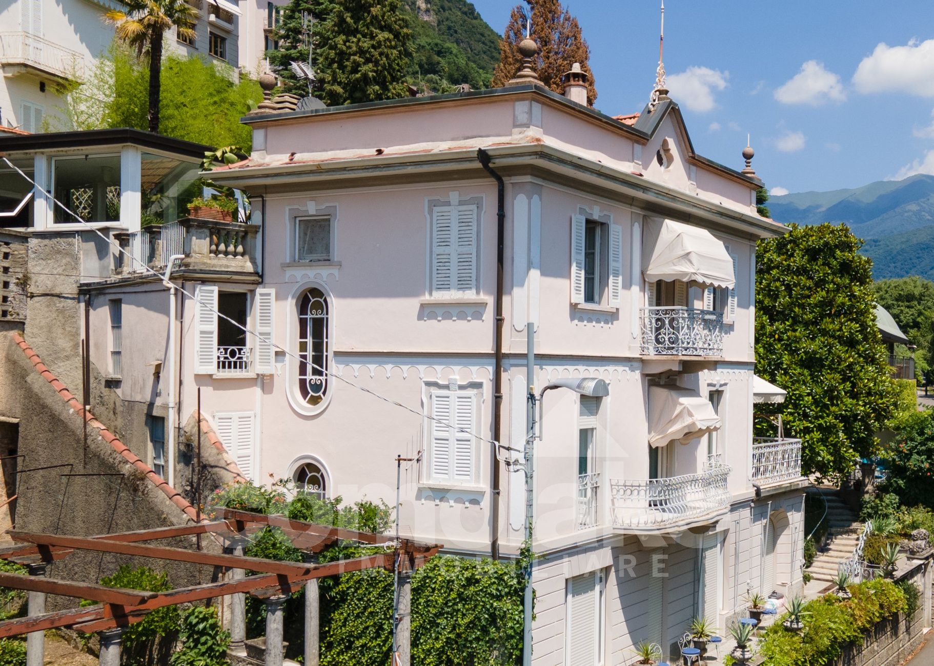 The historical lakefront villa close to Cernobbio is located in a prestigious area of Lake Como, in the surroundings of luxury hotels. The lake is just few steps away. At the entrance of the property there is the spacious living area with fireplace and refined parquet floor. Here we find also the elegant dining area, bright thanks to the big windows. On this same floor there is the living room with liberty style window. At the upper floor there is the sleeping area, with three bedrooms and two bathrooms, plus the study room and the laundry. The second floor hosts another bedroom, other two bathrooms and the recreation room. These two floors have the access to the balconies.