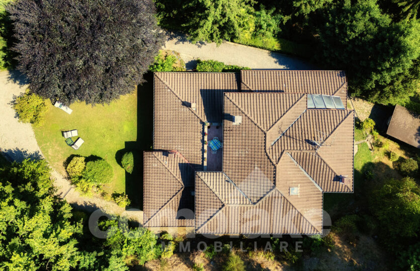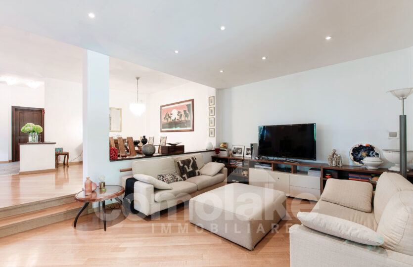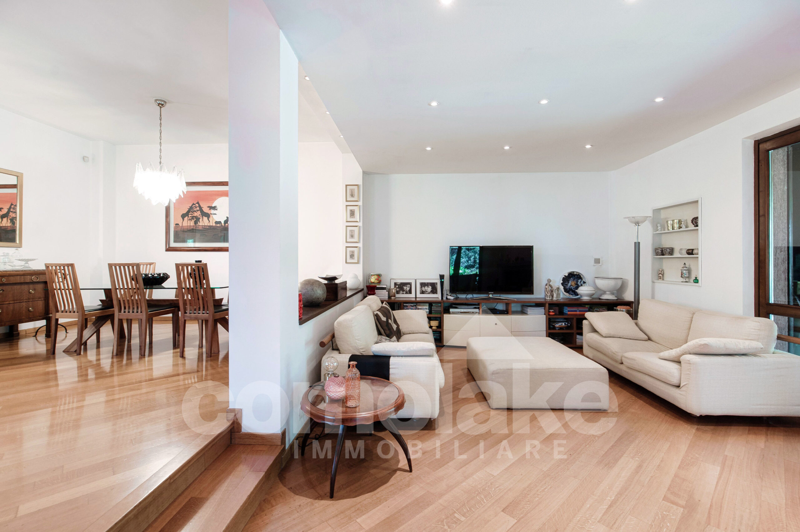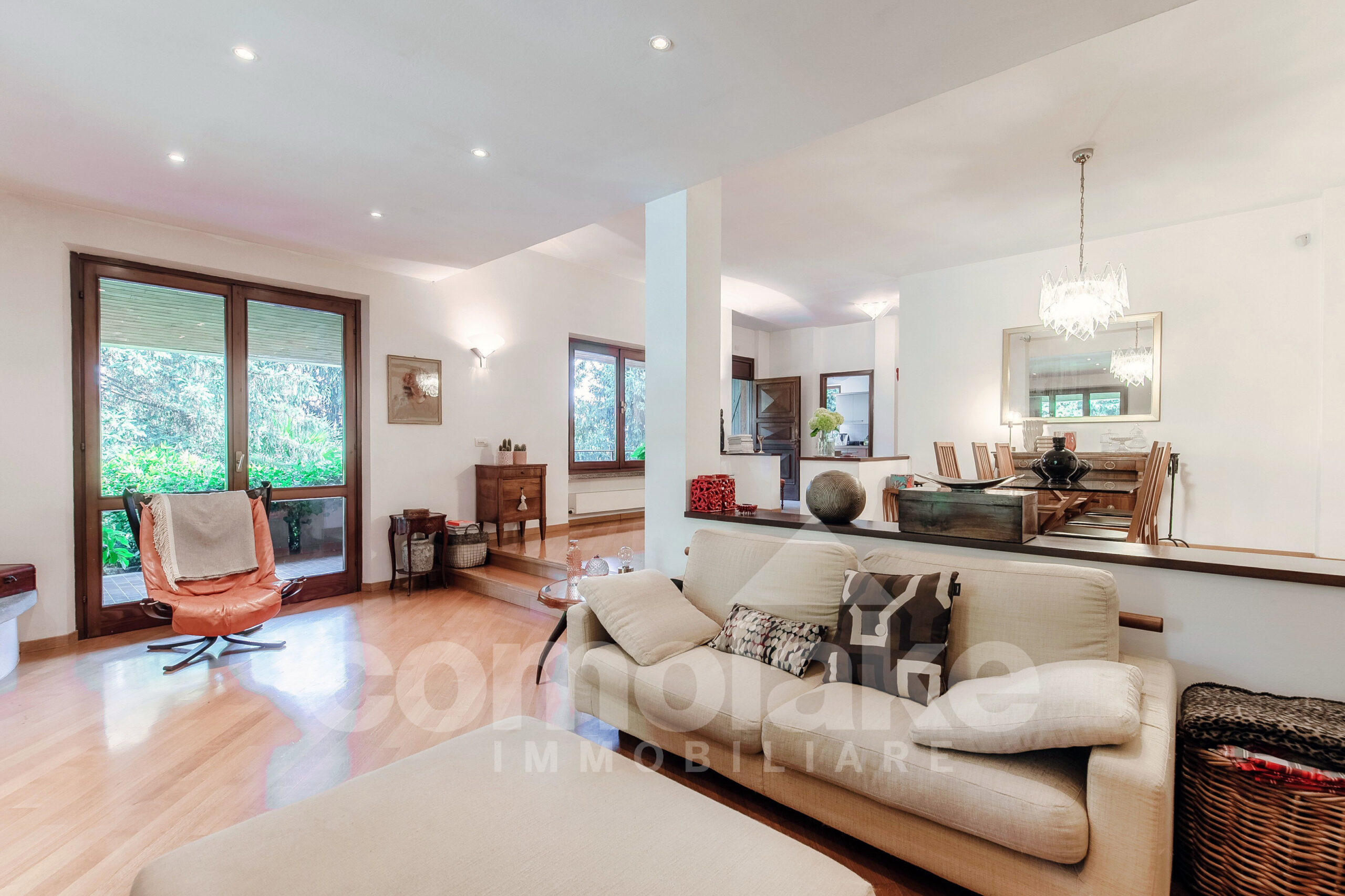 With a total surface area of about 400 sqm, the independent villa with spacious garden offers spacious, well-distributed interiors in a relaxing atmosphere, within a peaceful, green setting just minutes from the center of Como and the highway to Milan and Lugano.