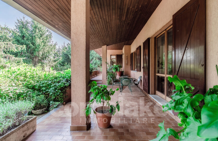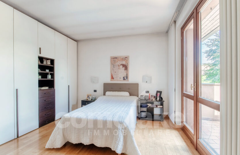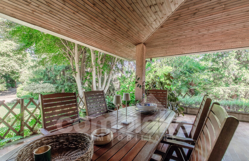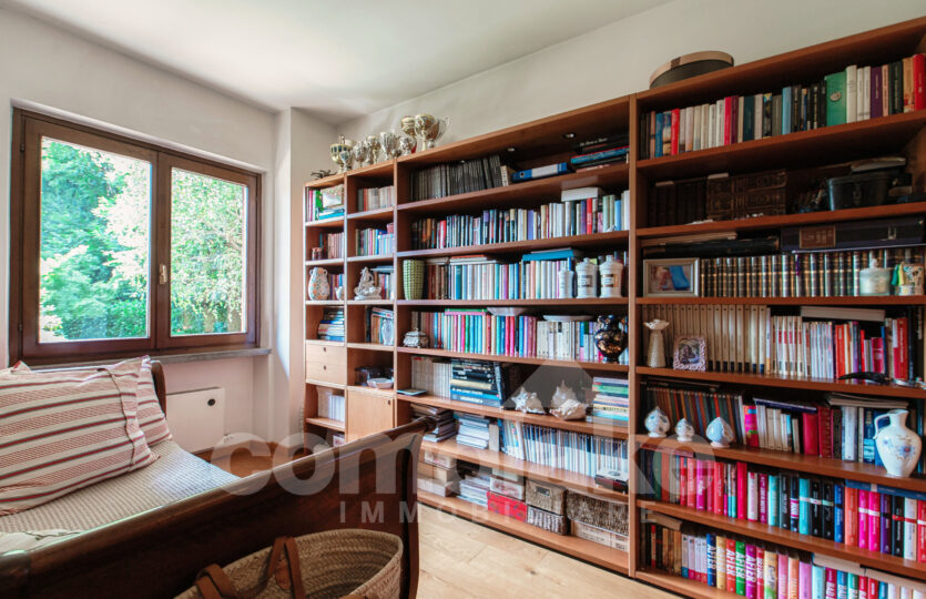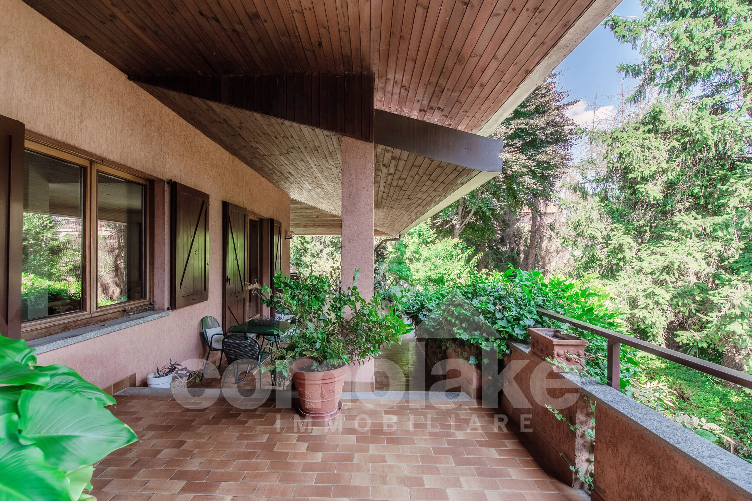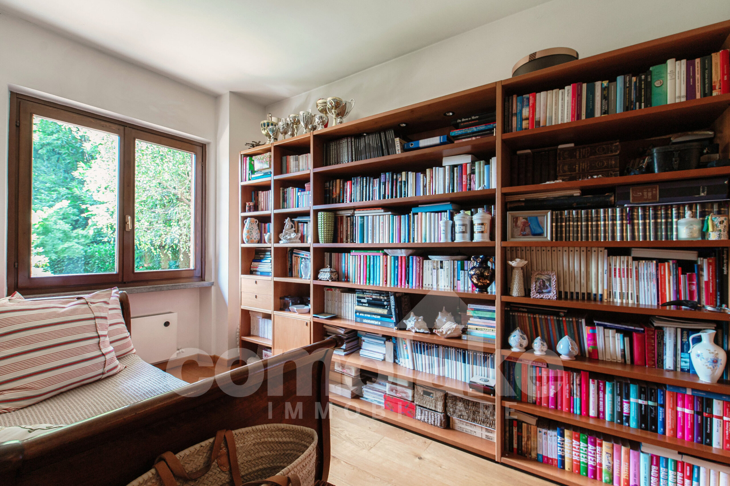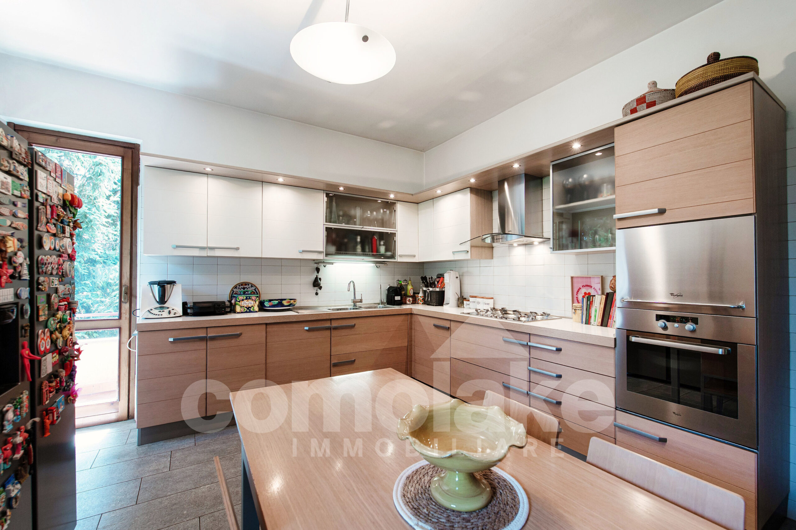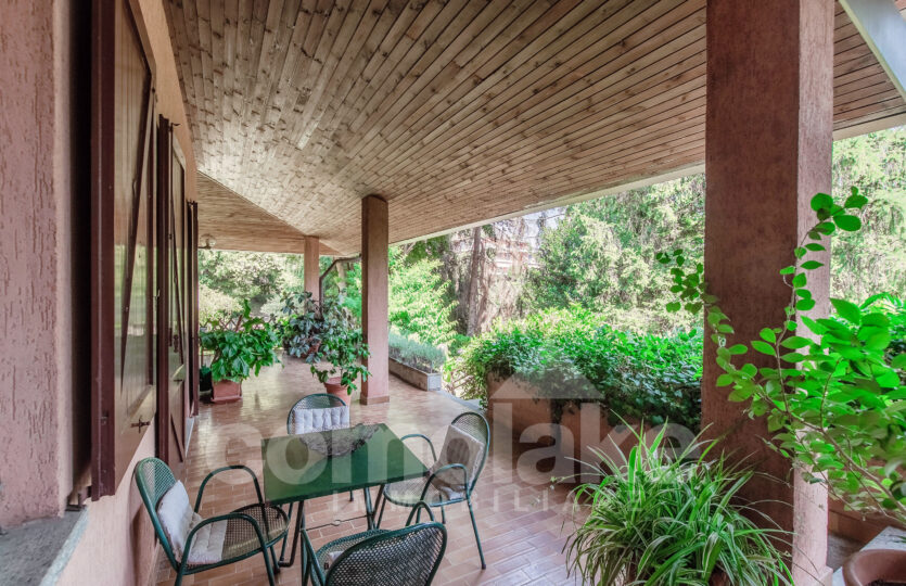The independent villa with spacious garden is located in a quiet and private area surrounded by greenery, in the residential district of San Fermo. It offers excellent privacy and a large private garden of about 5,000 sqm.