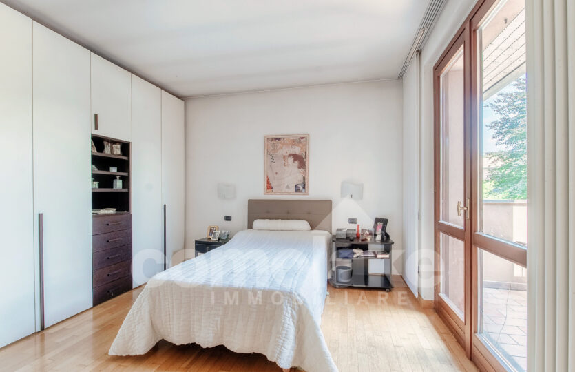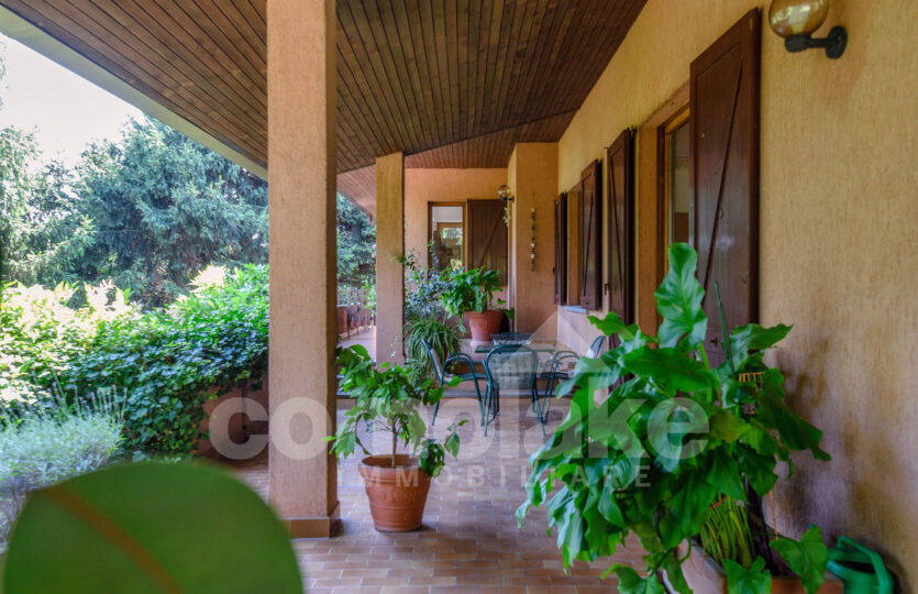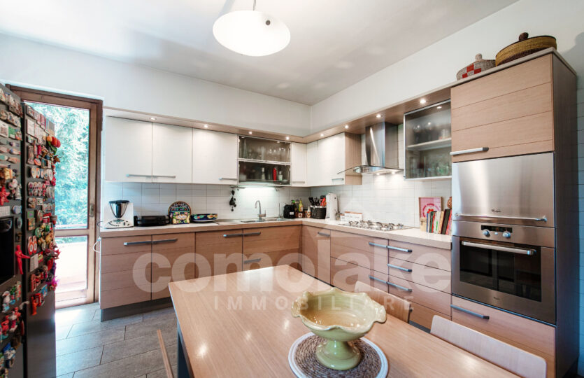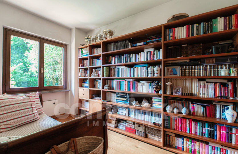 The independent villa with spacious garden is located in a quiet and private area surrounded by greenery, in the residential district of San Fermo. It offers excellent privacy and a large private garden of about 5,000 sqm.