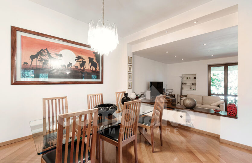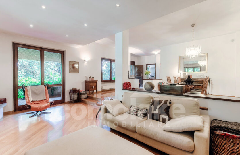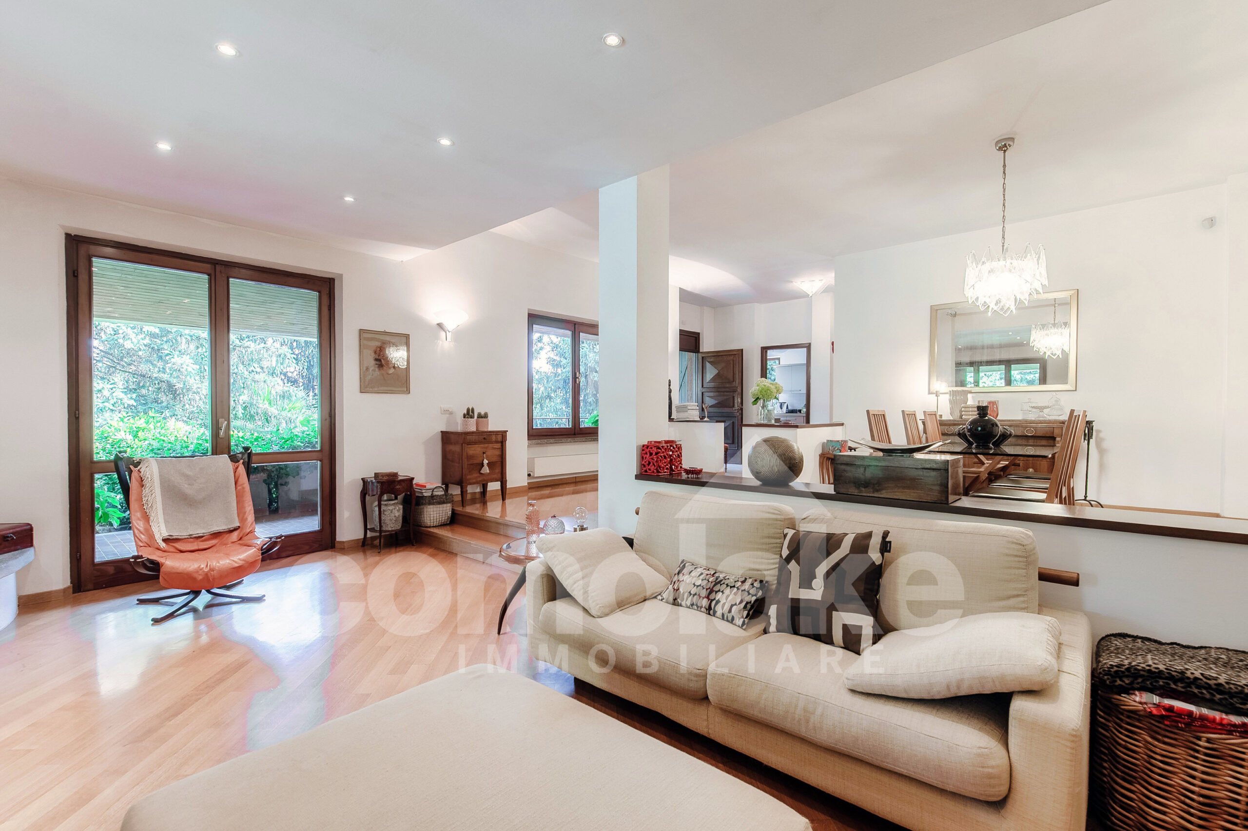 With a total surface area of about 400 sqm, the independent villa with spacious garden offers spacious, well-distributed interiors in a relaxing atmosphere, within a peaceful, green setting just minutes from the center of Como and the highway to Milan and Lugano.