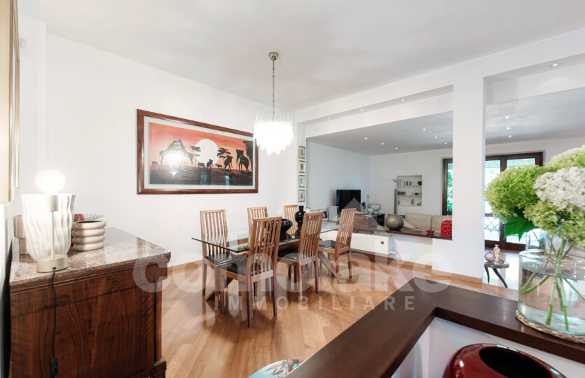 The independent villa with spacious garden stands out for the versatility of its layout, the generosity of its internal and external spaces, and its strategic location in an elegant setting. The basement also offers well-organized ancillary rooms and a laundry area.