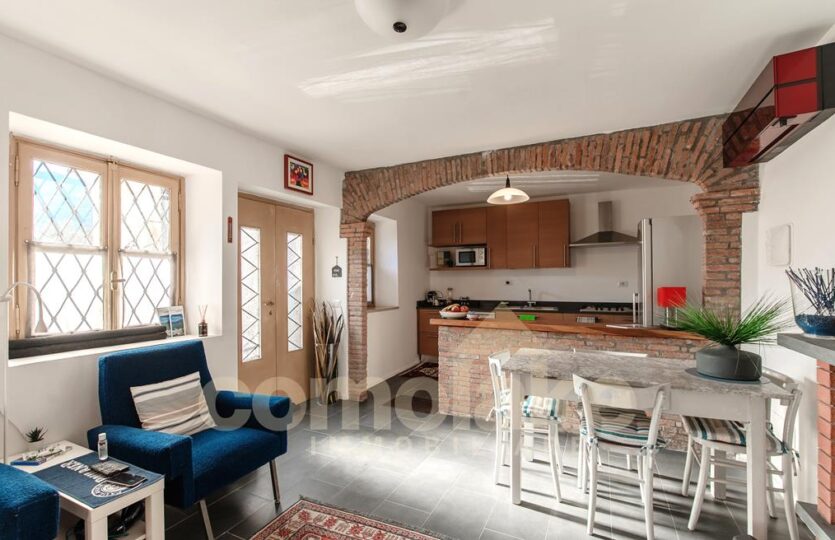 The rooms are high and the living area is open to the garden. A staircase leads to the sleeping floor currently arranged with a large double bedroom with terrace overlooking the lake, a room used as a wardrobe and possibility of realization of the second bedroom.