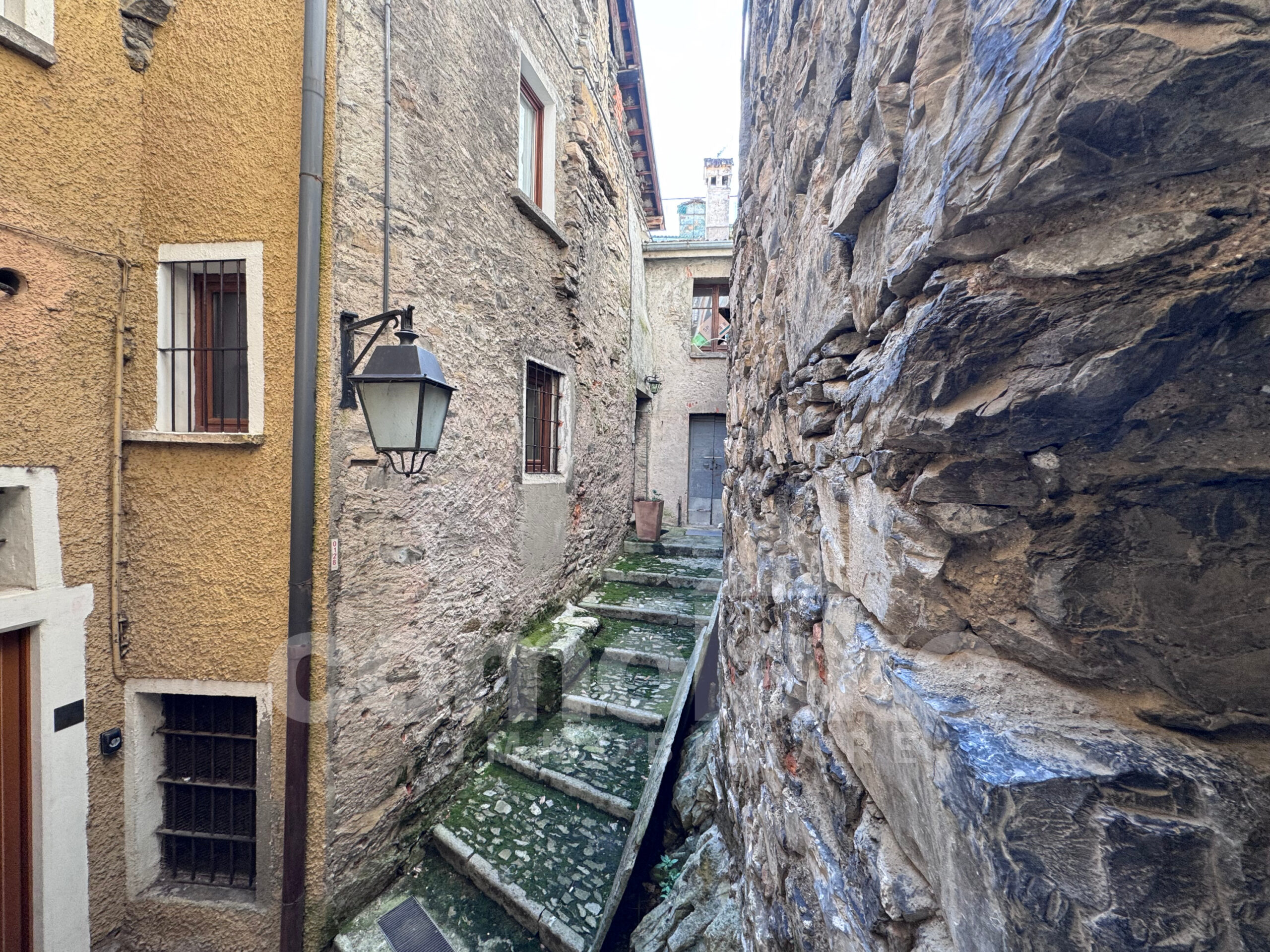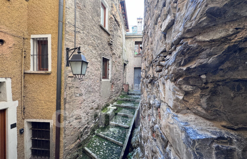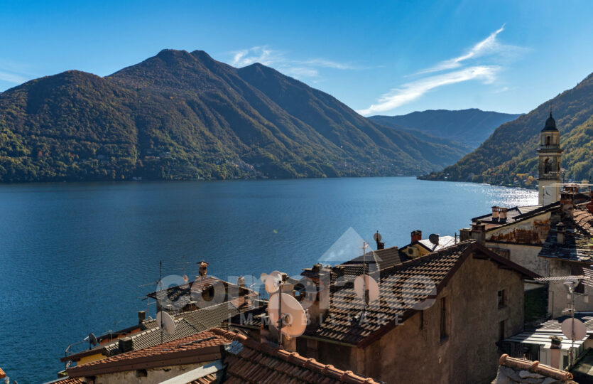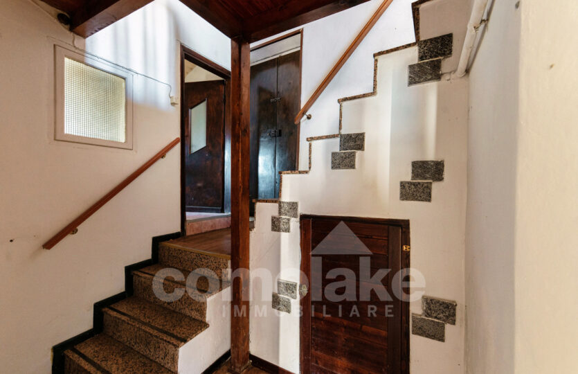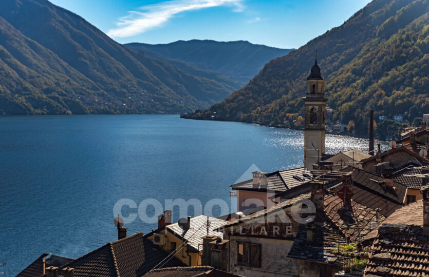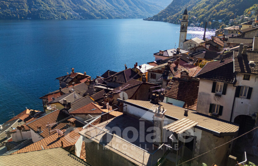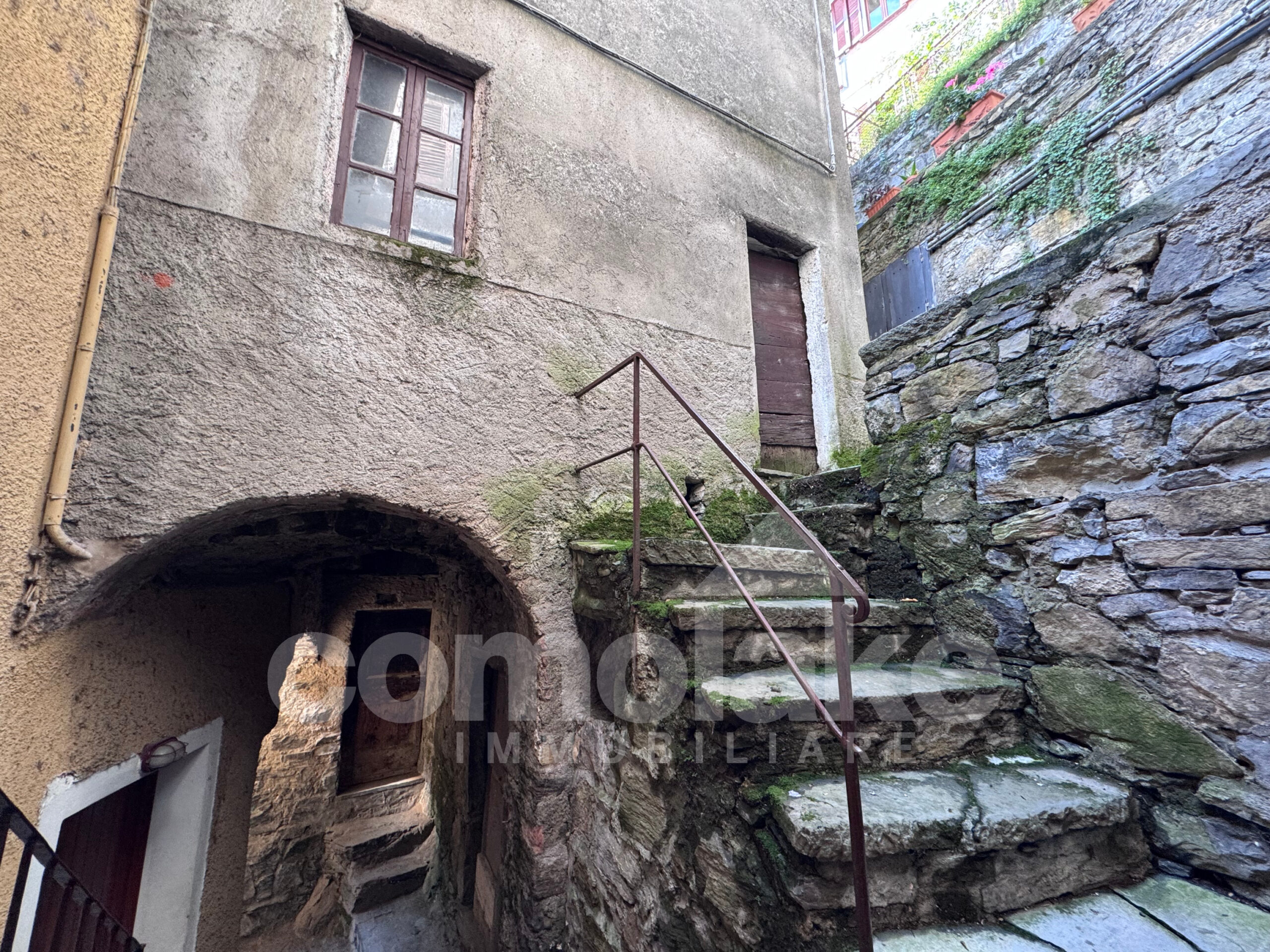 This lakeside home with a spacious terrace is accessed via a typical cobblestone path, and its historic origins are immediately evident: the thick Moltrasio stone walls and the gently rounded shapes of the interiors recall its past as a tower, later converted into a private residence. At the base, two rooms with vaulted ceilings enjoy independent access. The upper section unfolds over two residential levels, each with its own entrance—making it possible to divide the property into two separate living units.