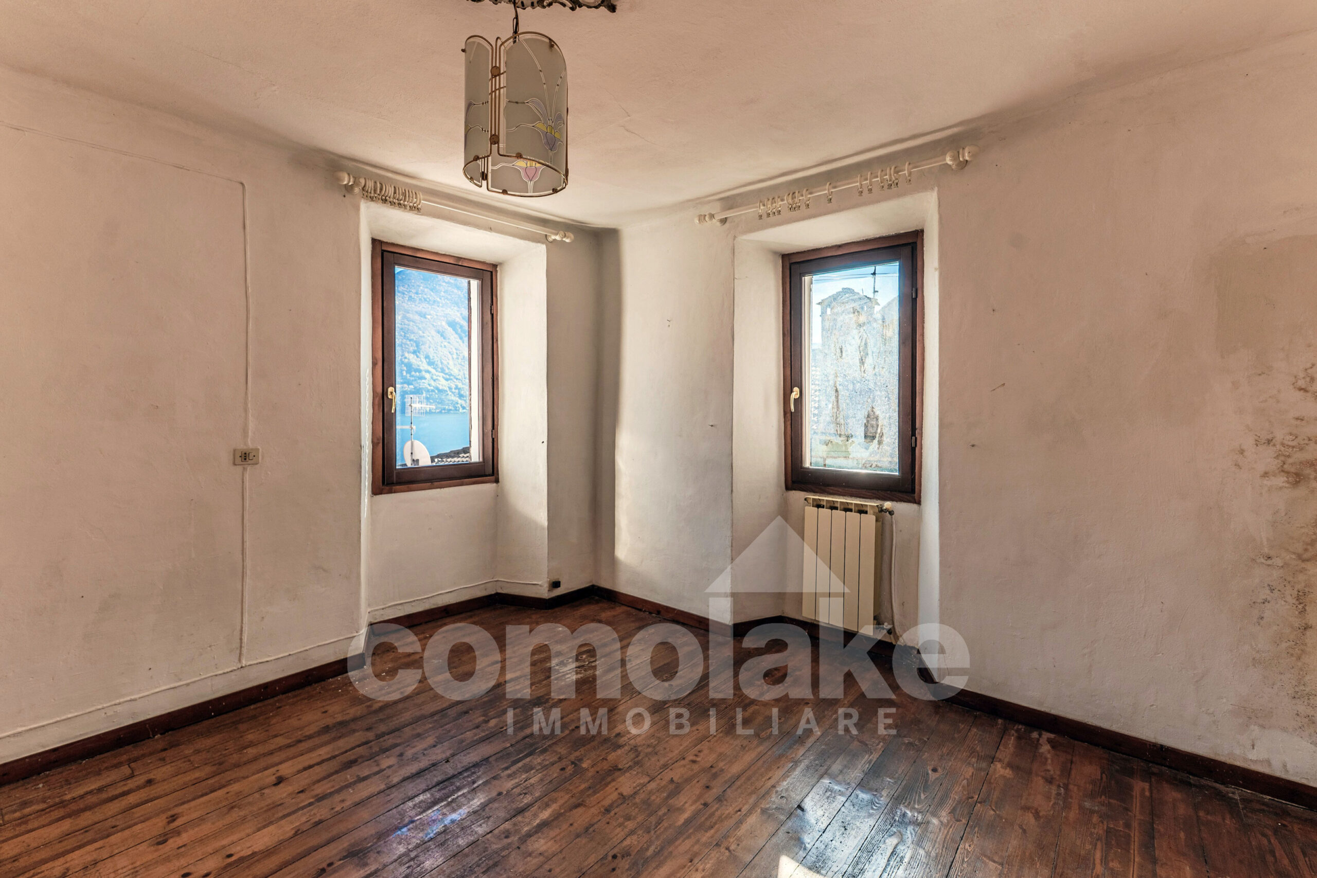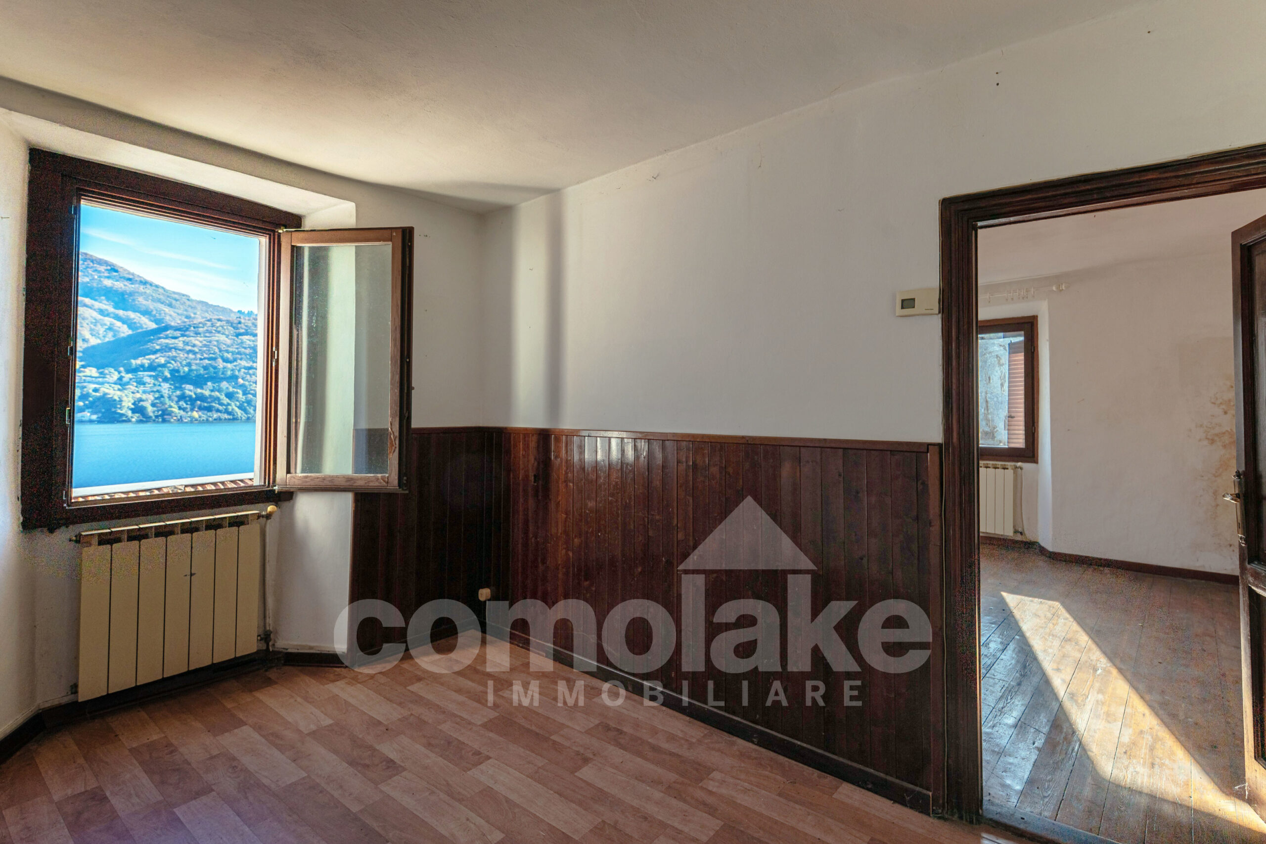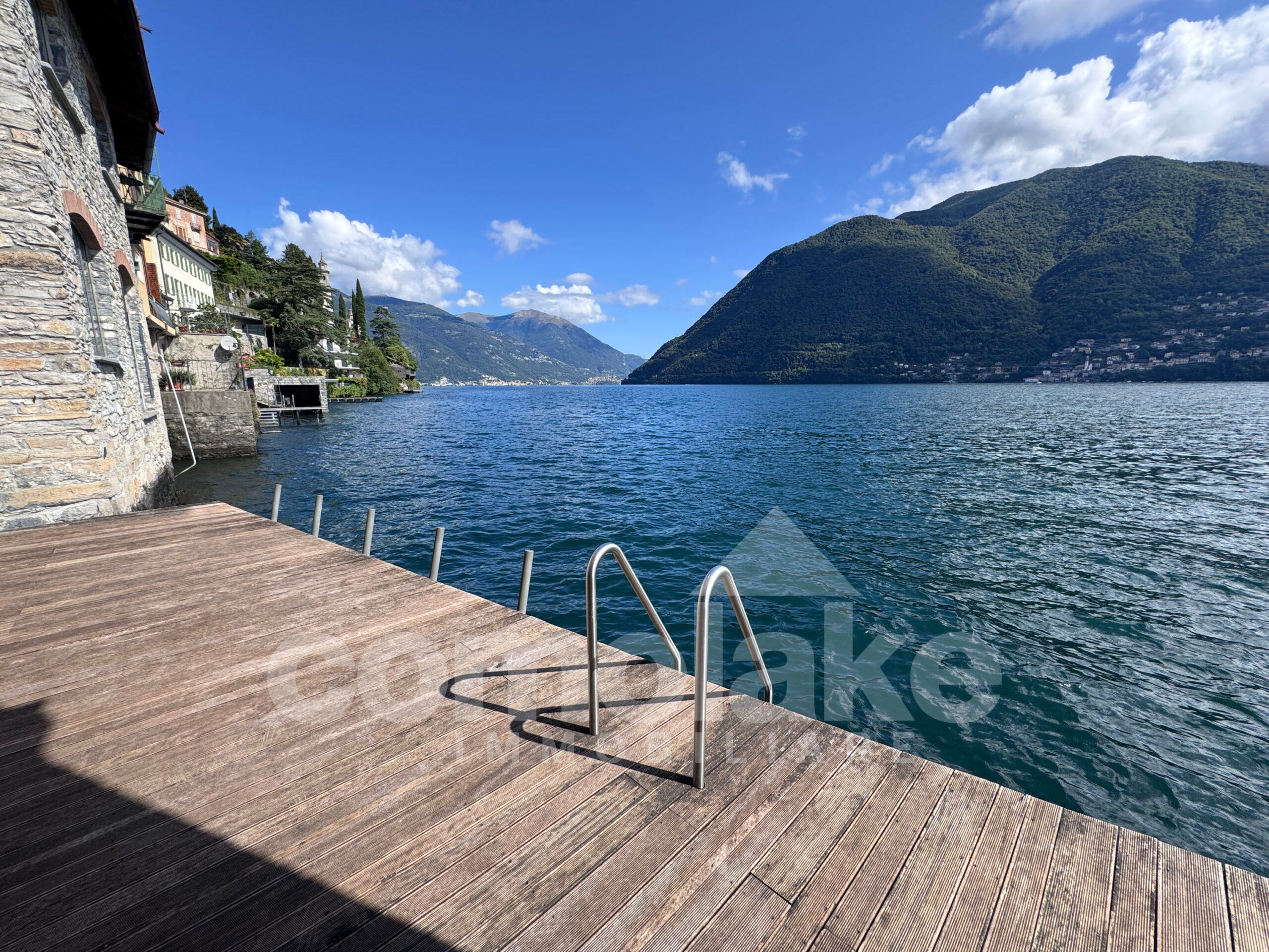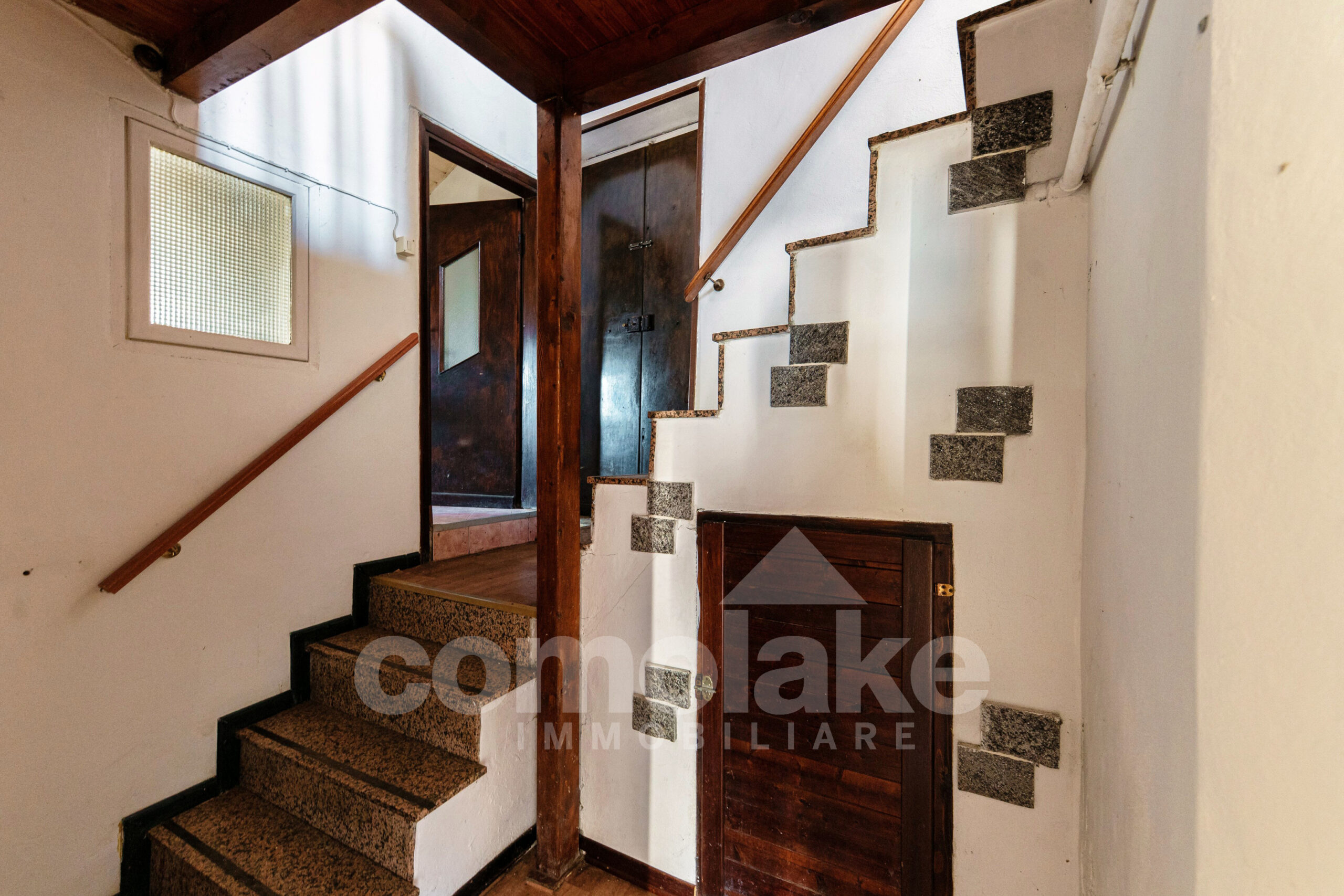 This lakeside home with a spacious terrace is accessed via a typical cobblestone path, and its historic origins are immediately evident: the thick Moltrasio stone walls and the gently rounded shapes of the interiors recall its past as a tower, later converted into a private residence. At the base, two rooms with vaulted ceilings enjoy independent access. The upper section unfolds over two residential levels, each with its own entrance—making it possible to divide the property into two separate living units.