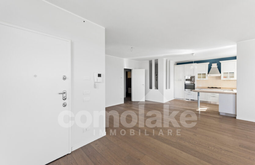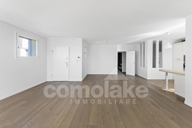 Upon entering the modern apartment with terrace in Cernobbio, one immediately notices the magnificent exposure that ensures natural light throughout the entire day. The large living area is designed with a lounge, dining area, and open-plan kitchen. The kitchen is modern, functional, and included in the sale.
