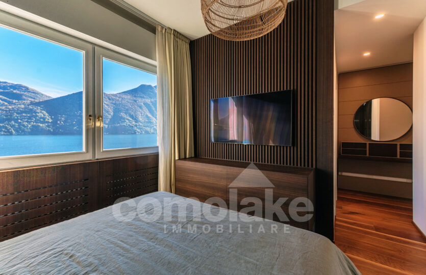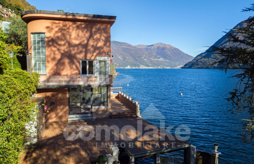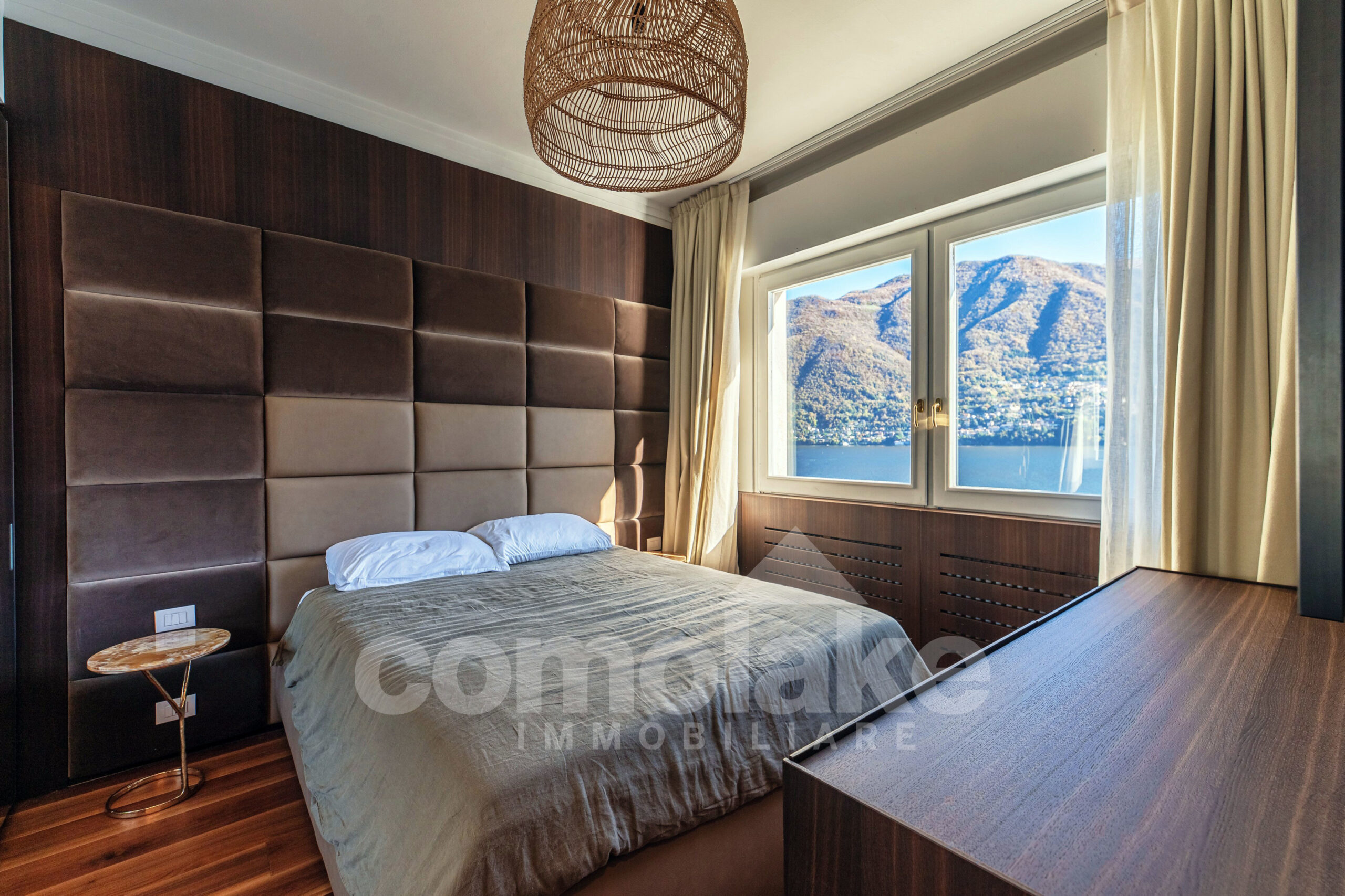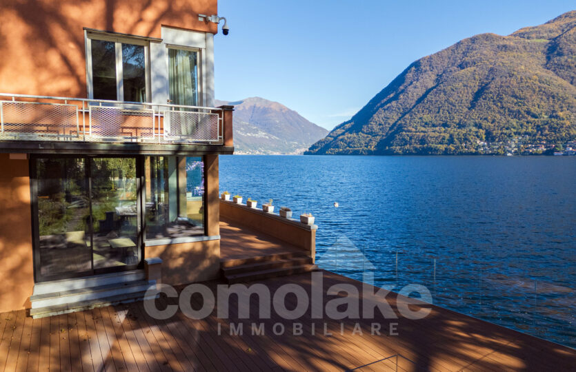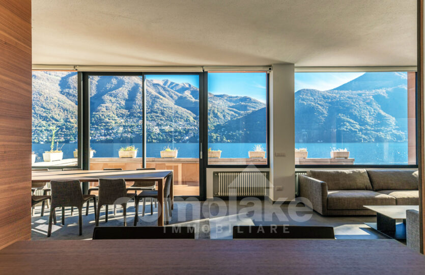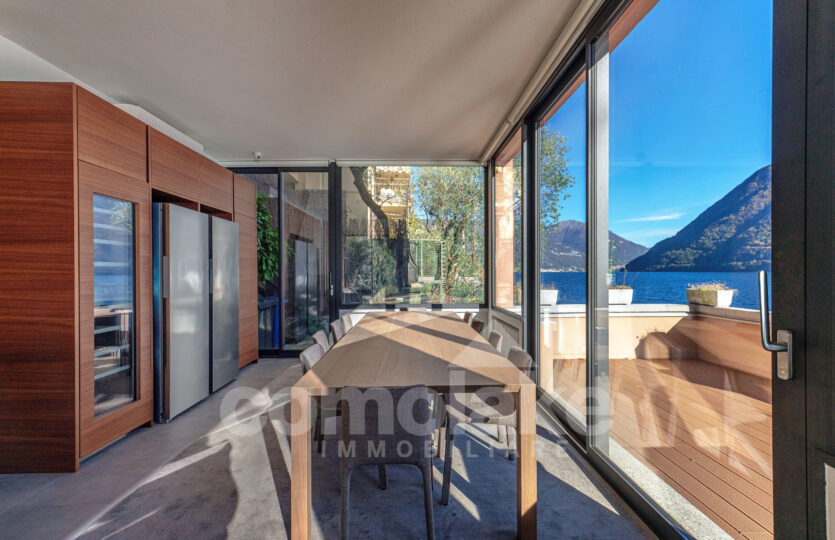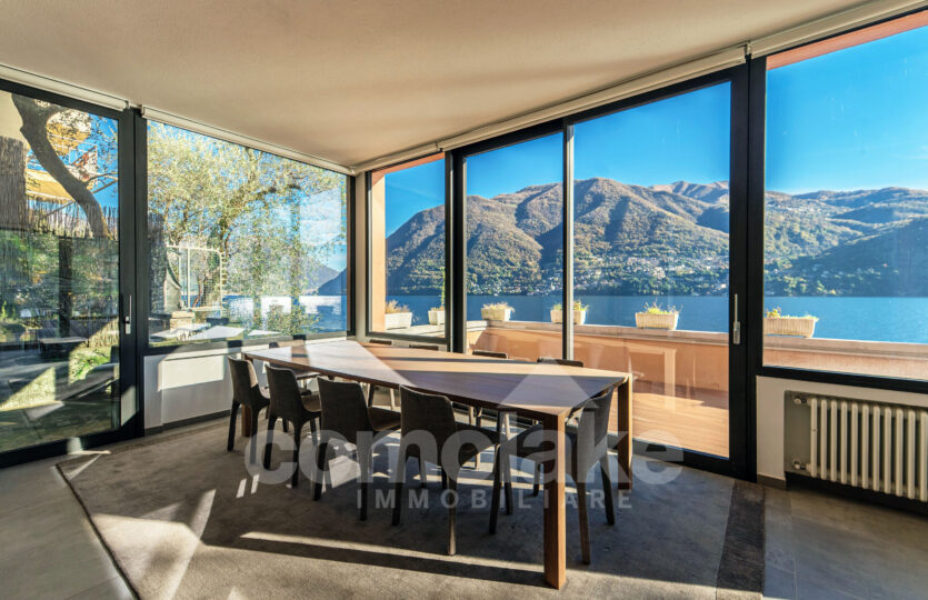 The villa’s two upper floors enjoy a magnificent panoramic view of the lake, thanks to the large windows that define the property.