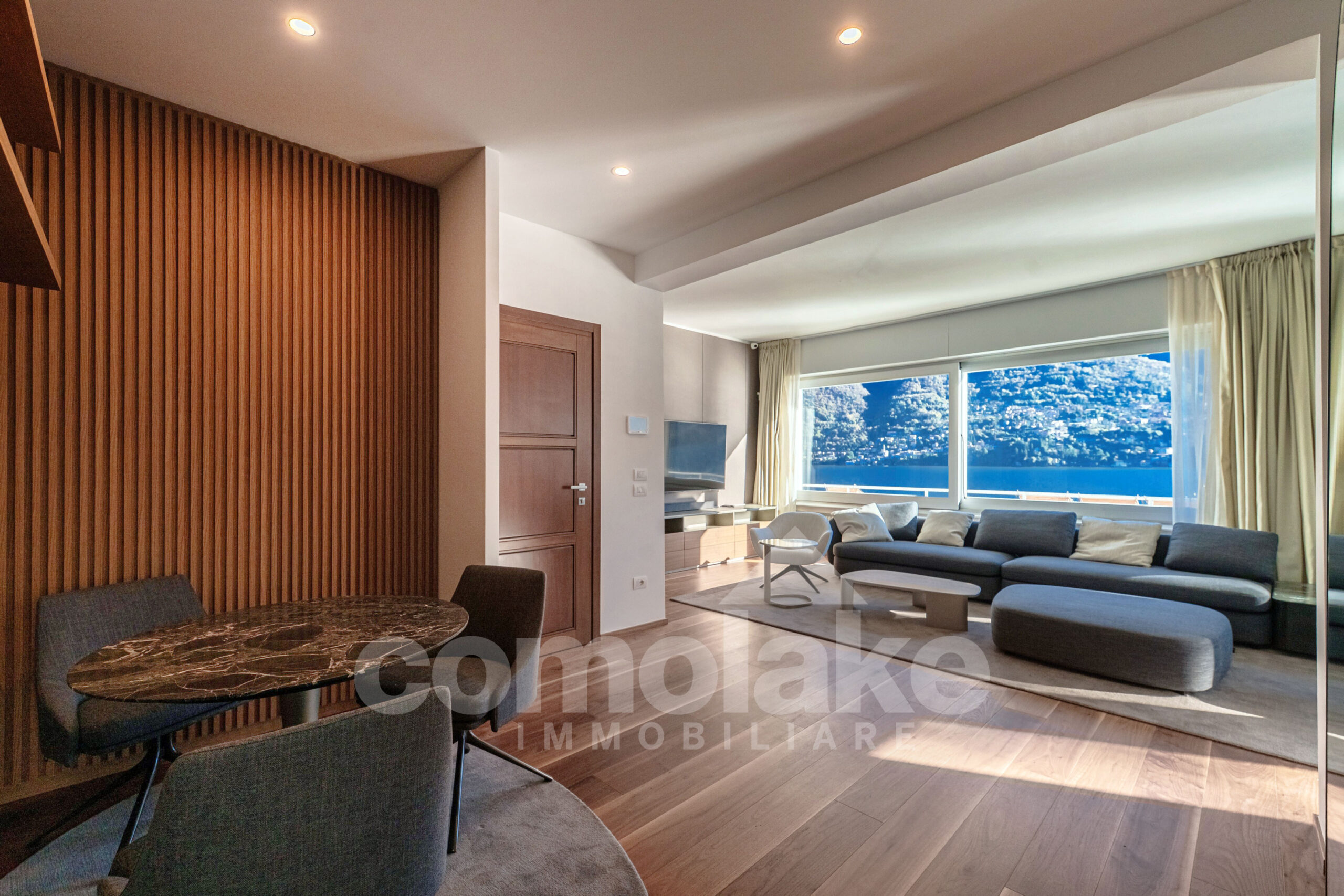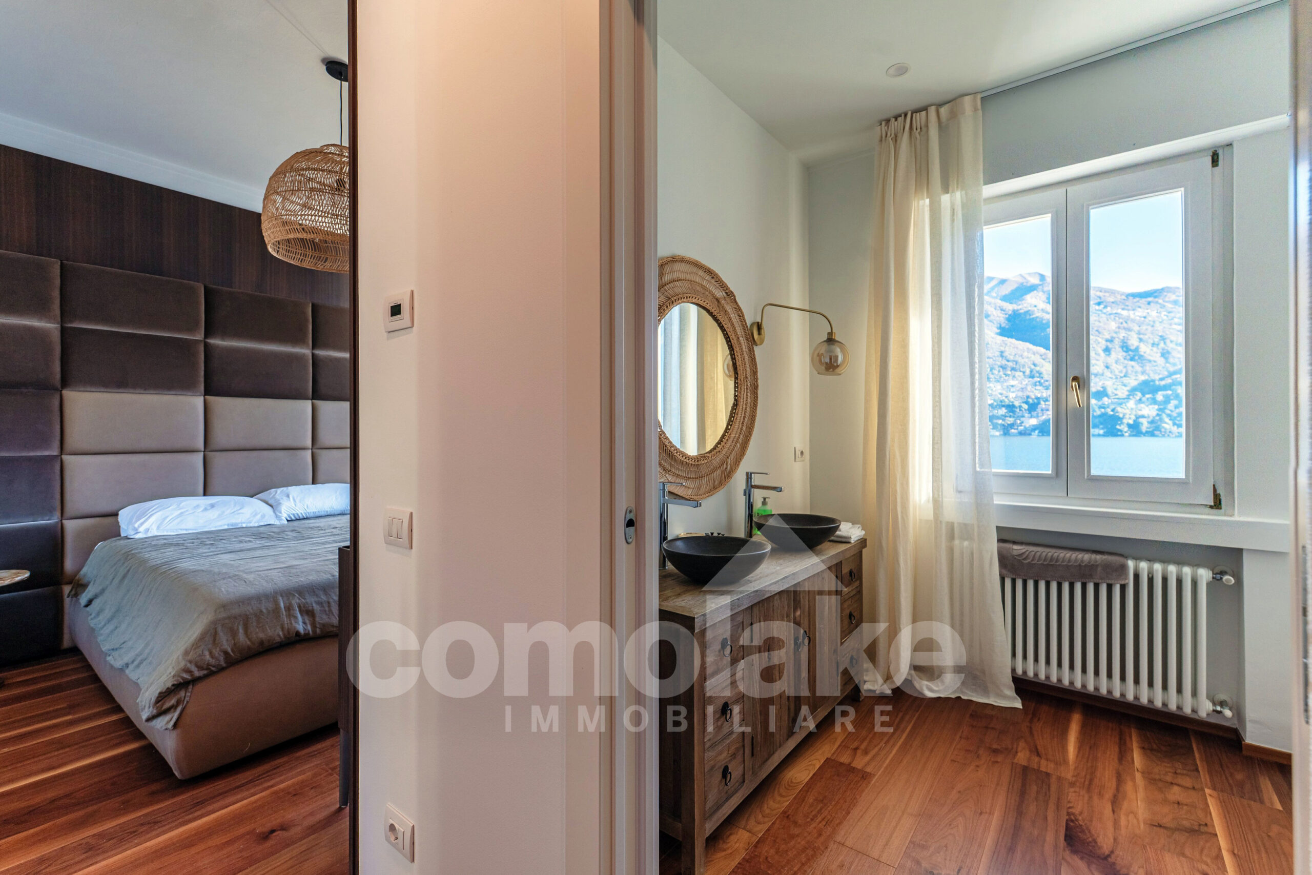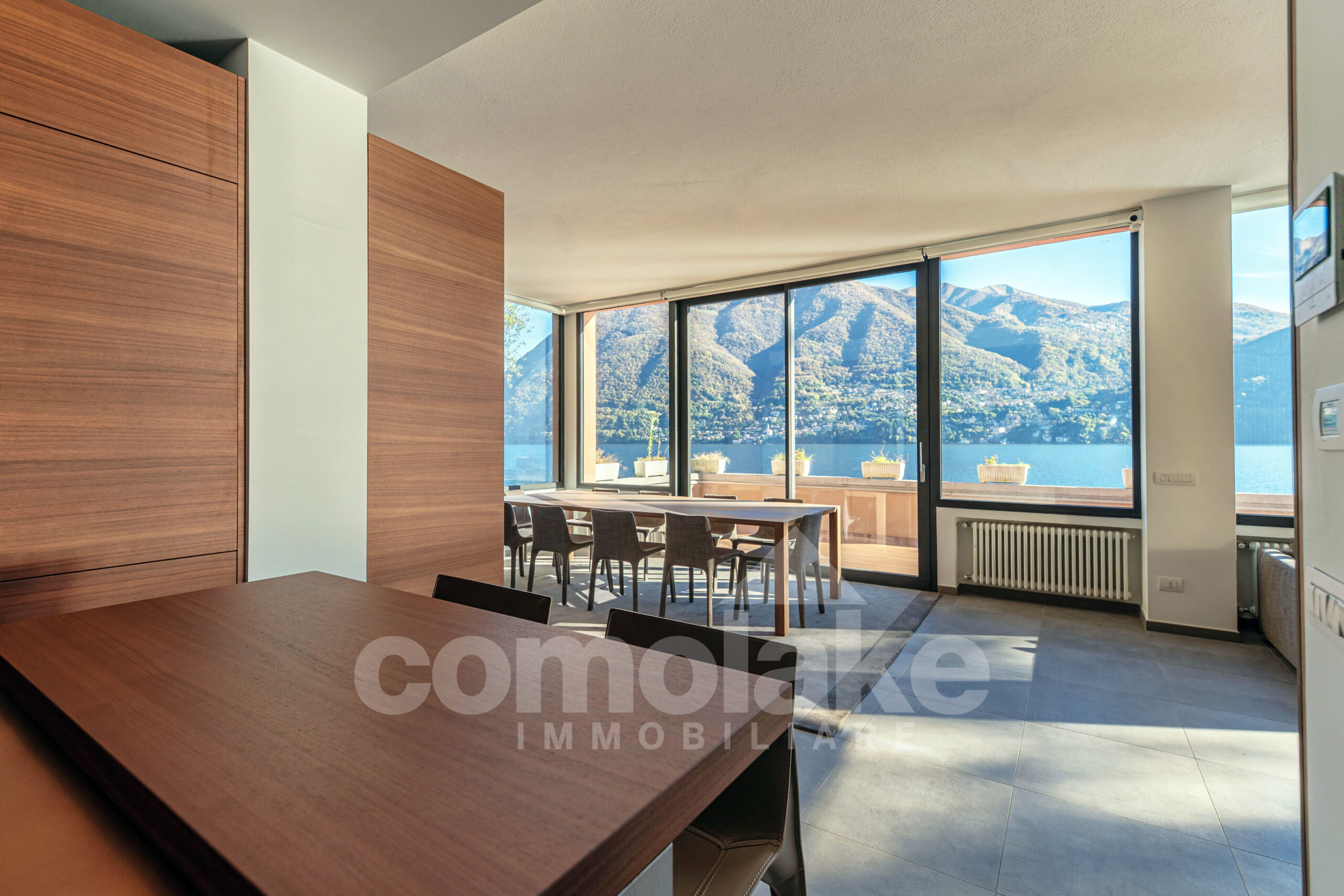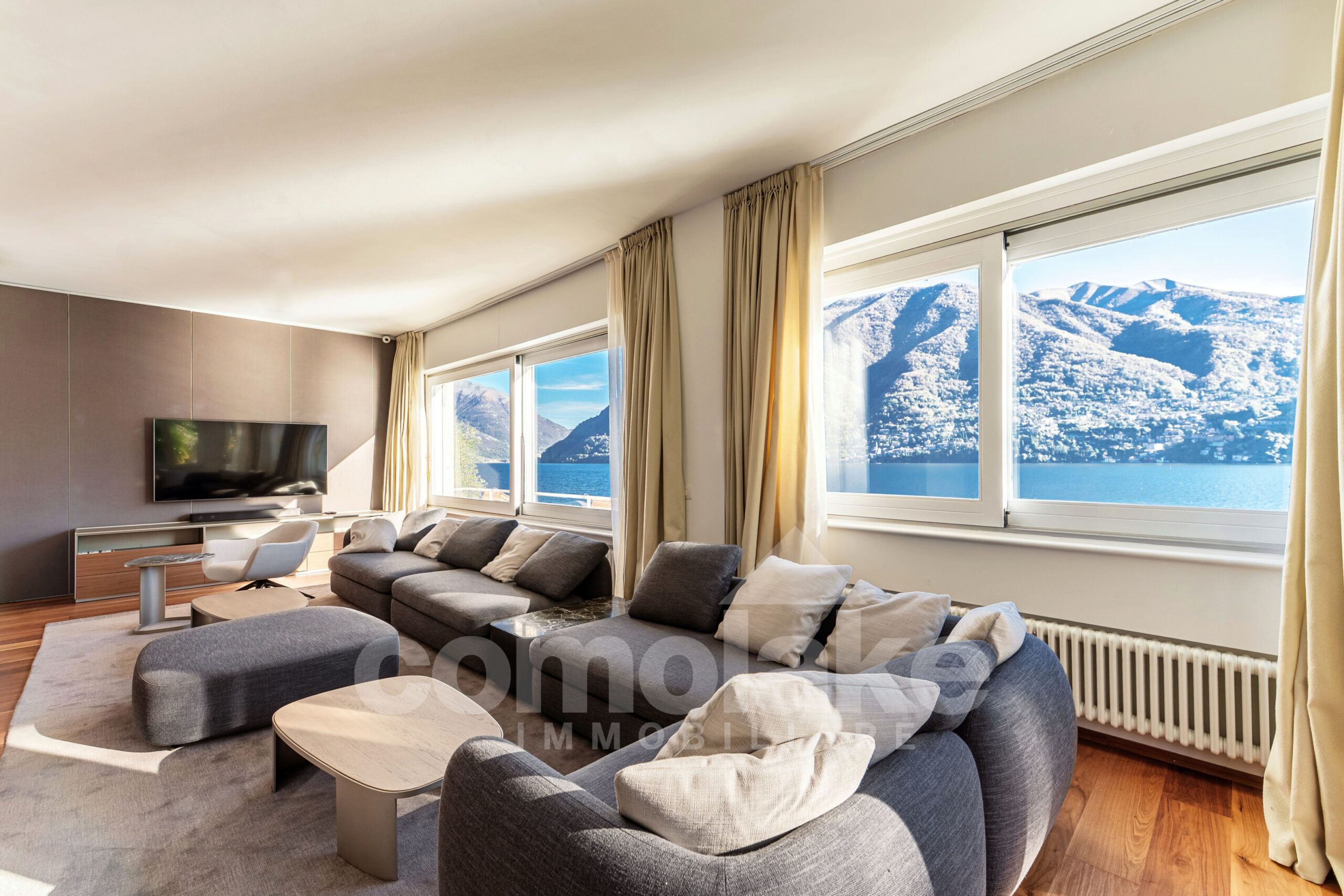 The modern lakefront villa with a large garden enjoys an exclusive location with plenty of privacy. The interiors are spacious and filled with natural light, and the renovation project was designed to respect the natural surroundings of the villa, offering stunning views of both the lake and the typical vegetation of the area. The flooring and furnishings create continuity between indoor and outdoor spaces, generating a natural and relaxing atmosphere.