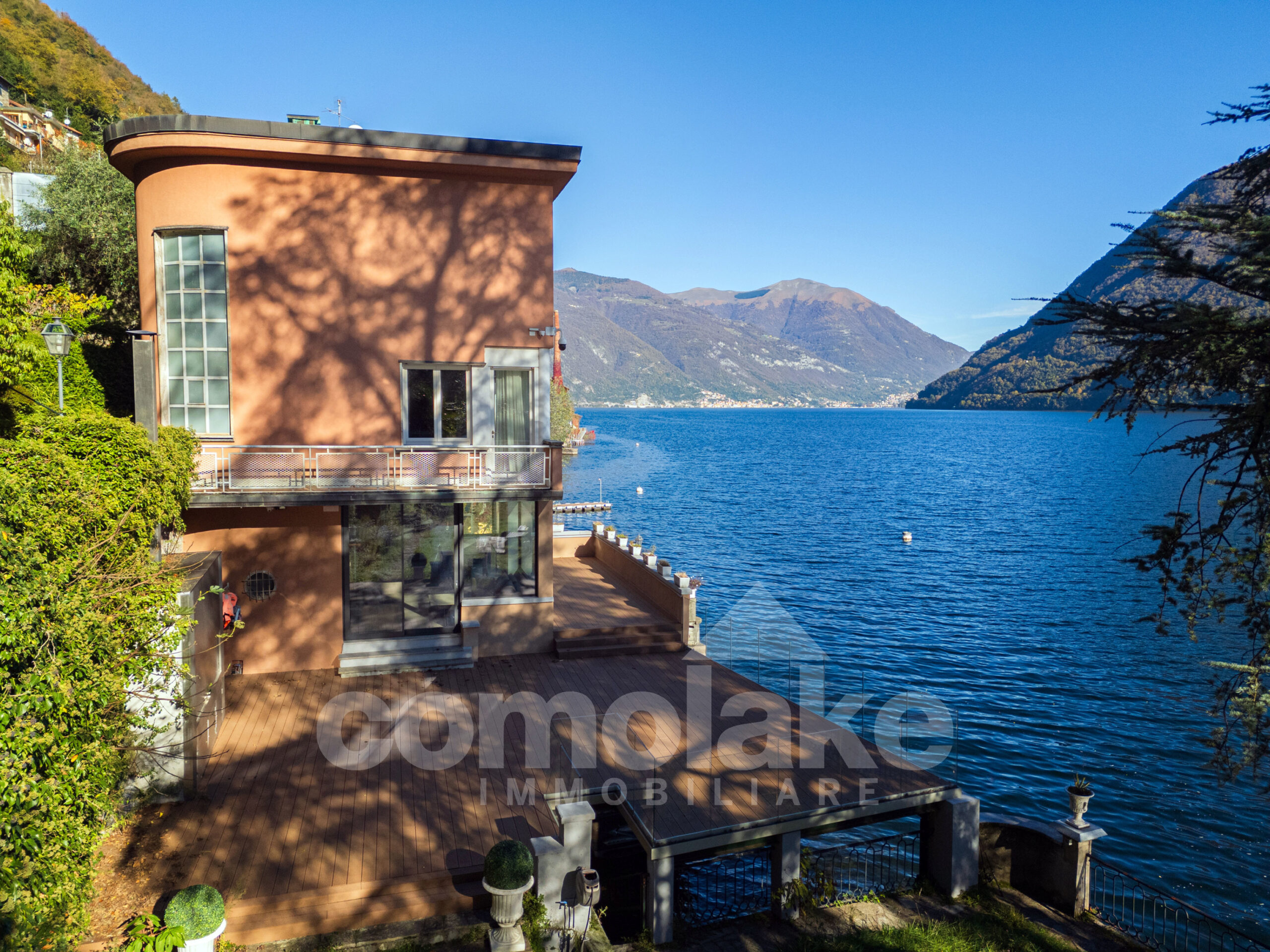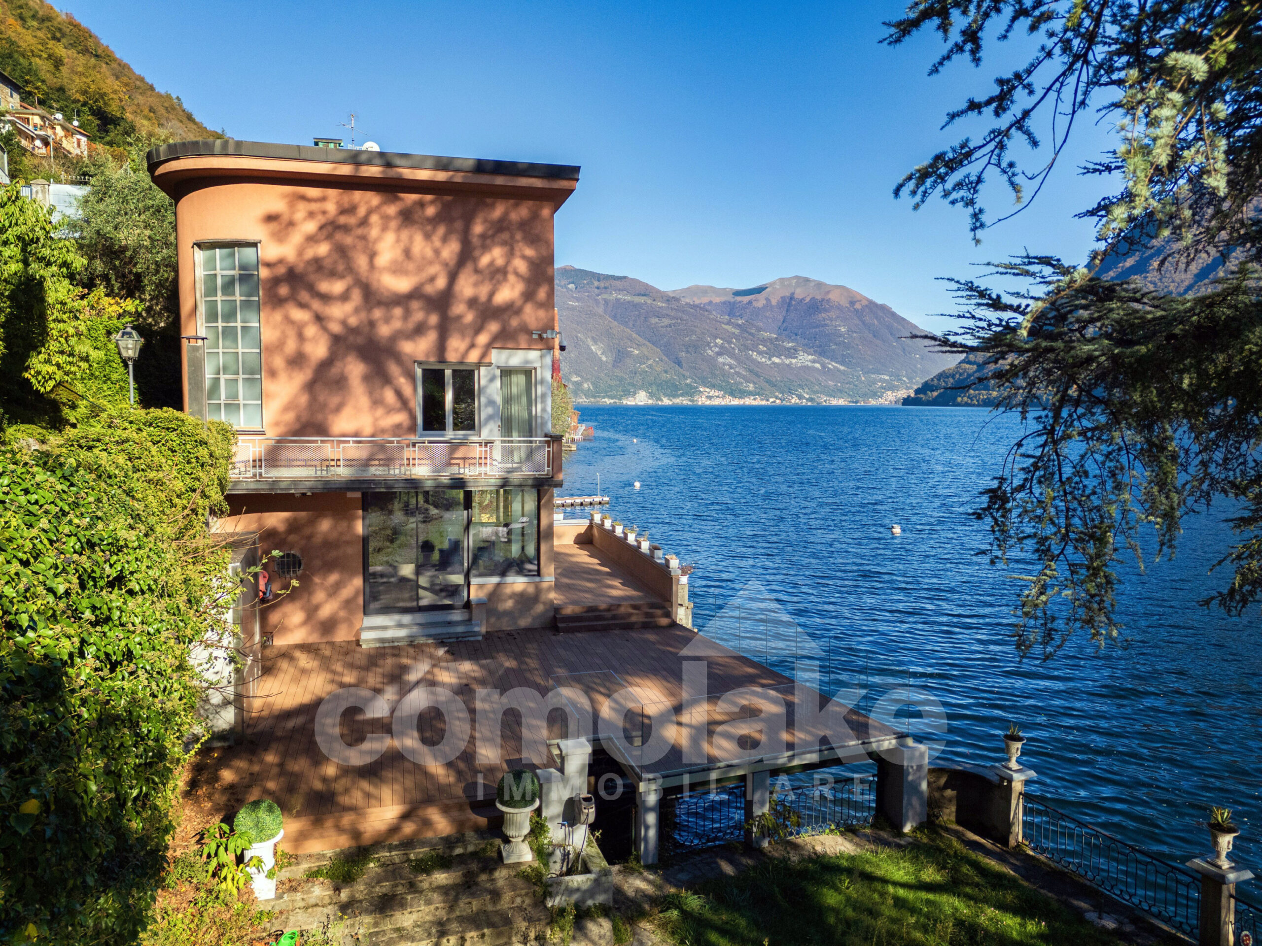 The modern lakefront villa with a large garden has recently undergone renovation work that enhances the original 1960s architecture.