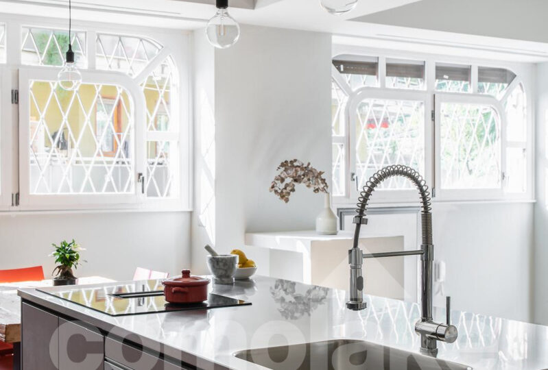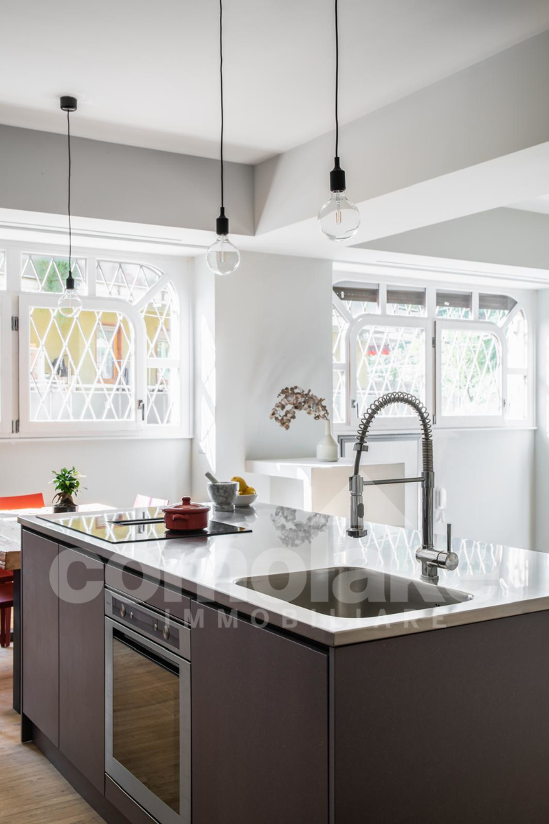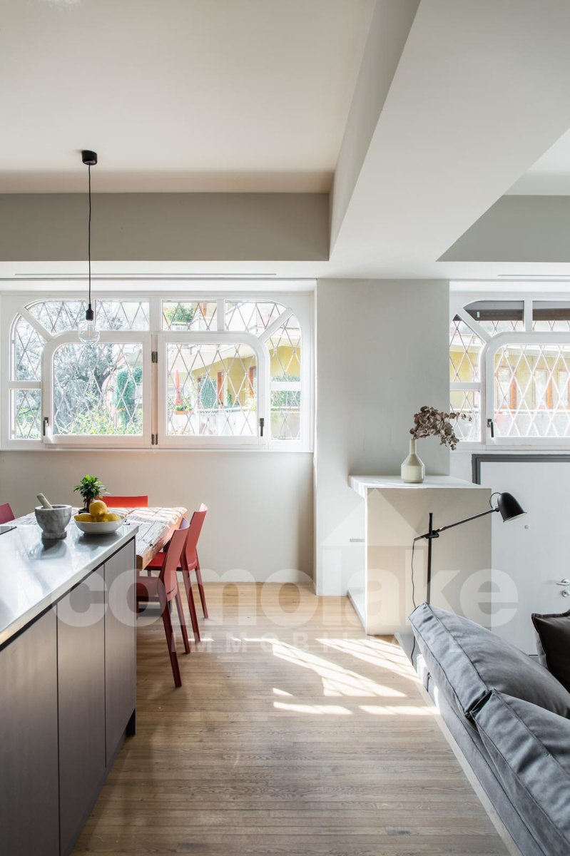 The open-plan apartment in a historic villa in downtown Cernobbio enjoys a privileged position within an exclusive setting. A meticulous renovation project has enhanced the property’s original spaces and proportions, transforming it into a modern and functional home.