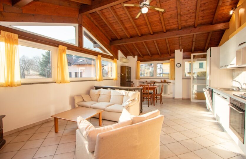 - apartment on the second floor consisting of: large open-plan living room, open kitchen, 3 bedrooms, bathroom, fully furnished with beautiful lake views. In addition, private garden of approximately 200 square meters, independent studio apartment, and private parking space. The apartment has a surface area of approximately 100 square meters and the asking price is €365,000.00;
