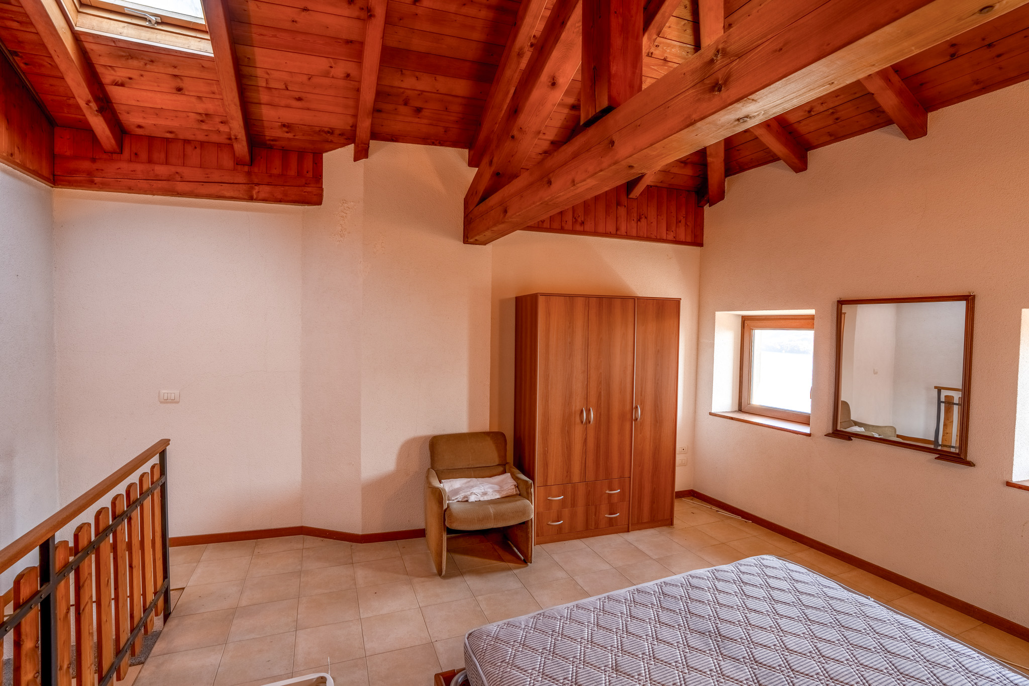 second floor attic: a large living room with a panoramic balcony, or a large bedroom;