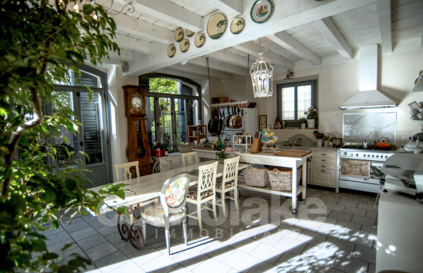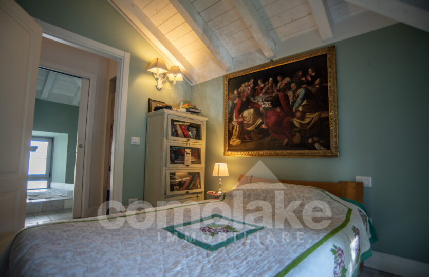 The dimension of the villa was thought with a spacious living area openspace with wide windows overlooking the lake, the kitchen, the dining room and living room with fireplace beyond ancillary rooms very functional and a service bathroom. A stair with Moltrasio stone leads in the sleeping area where you find a master bedroom with private bathroom and wardrobe and another double bedroom with second bathroom. On the upper floor, four other charming rooms have been created where the exposed roof beams add character and a very romantic atmosphere.