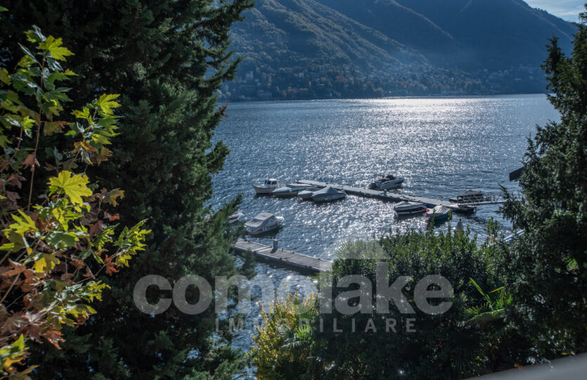 The villa facing the lake with boathouse in Moltrasio is reached easily has a comfortable car access in stone-paved area with three car spots.