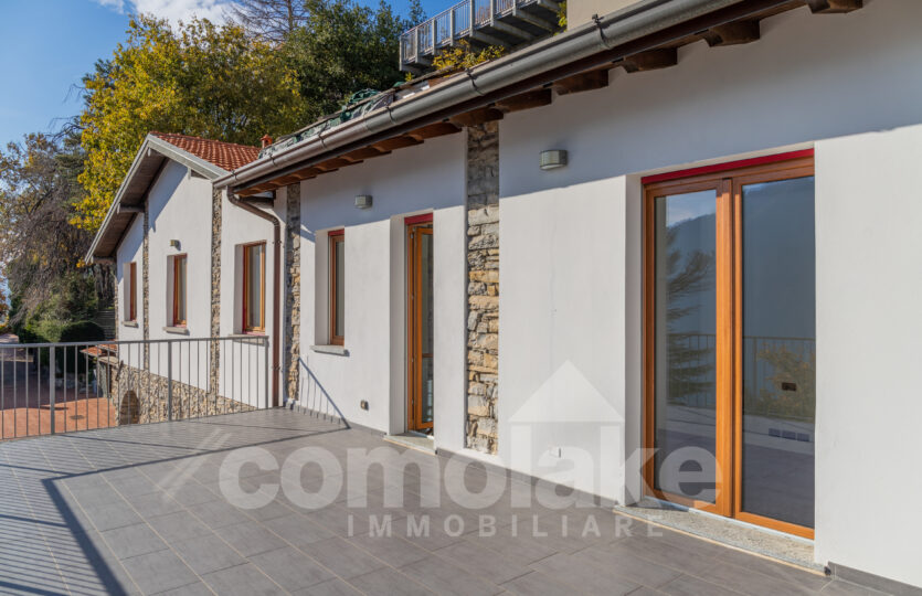 The villa in Cernobbio with fabulous lake view comprehends two floors with wide windows overlooking the lake. The living area on the ground floor features big terraces connected with the garden of the property. The habitable kitchen, which access to a nice porch, is particularly functional to organise lunchs and dinners, is next to the living room. Big windows which give brightness and a beautiful view characterise the living area. On the same floor a laundry, service bathroom, technical room and another porch equipped for the bbq area. Wood internal stairs lead to the sleeping area, reachable also through the elevator. On this floor there are two double rooms, one single room and a study room, plus other two bathrooms. The spacious panoramic terrace of the sleeping area offers a nice view on the lake.
