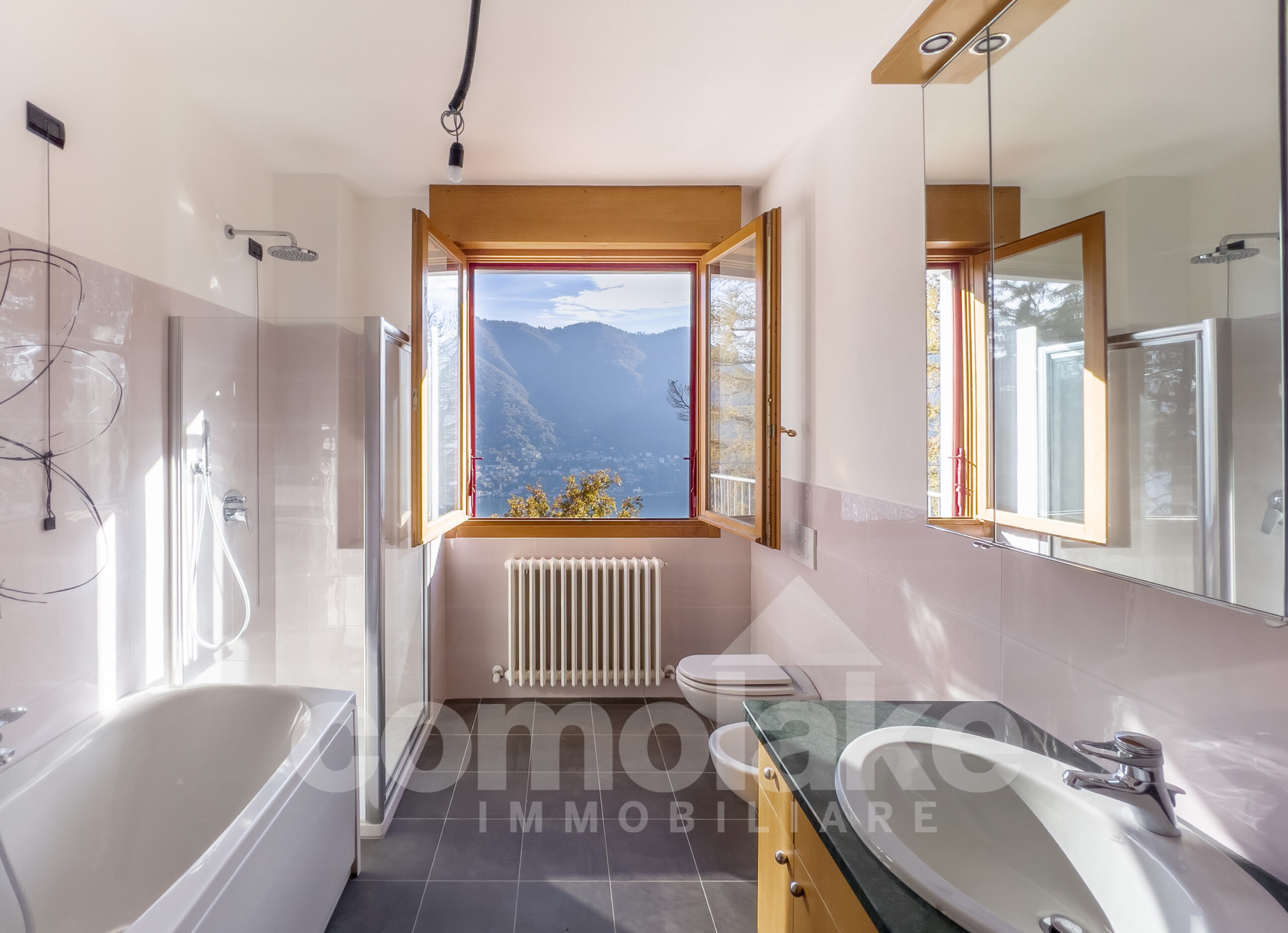 The Villa in Cernobbio with fabulous lake view has a great uphil location in a dominant and quiet position. The property is immersed in a green area and thanks to its position features a great view on Lake Como from every ambient and a charming sight on the picturesque village of Torno on the opposite shore. A restoration has a recently taken place. An accurate project that has realised a parking spot for two or three cars. From there, it is possible to directly access the property through an elevator. It is in any case possibile to use internal stairs.