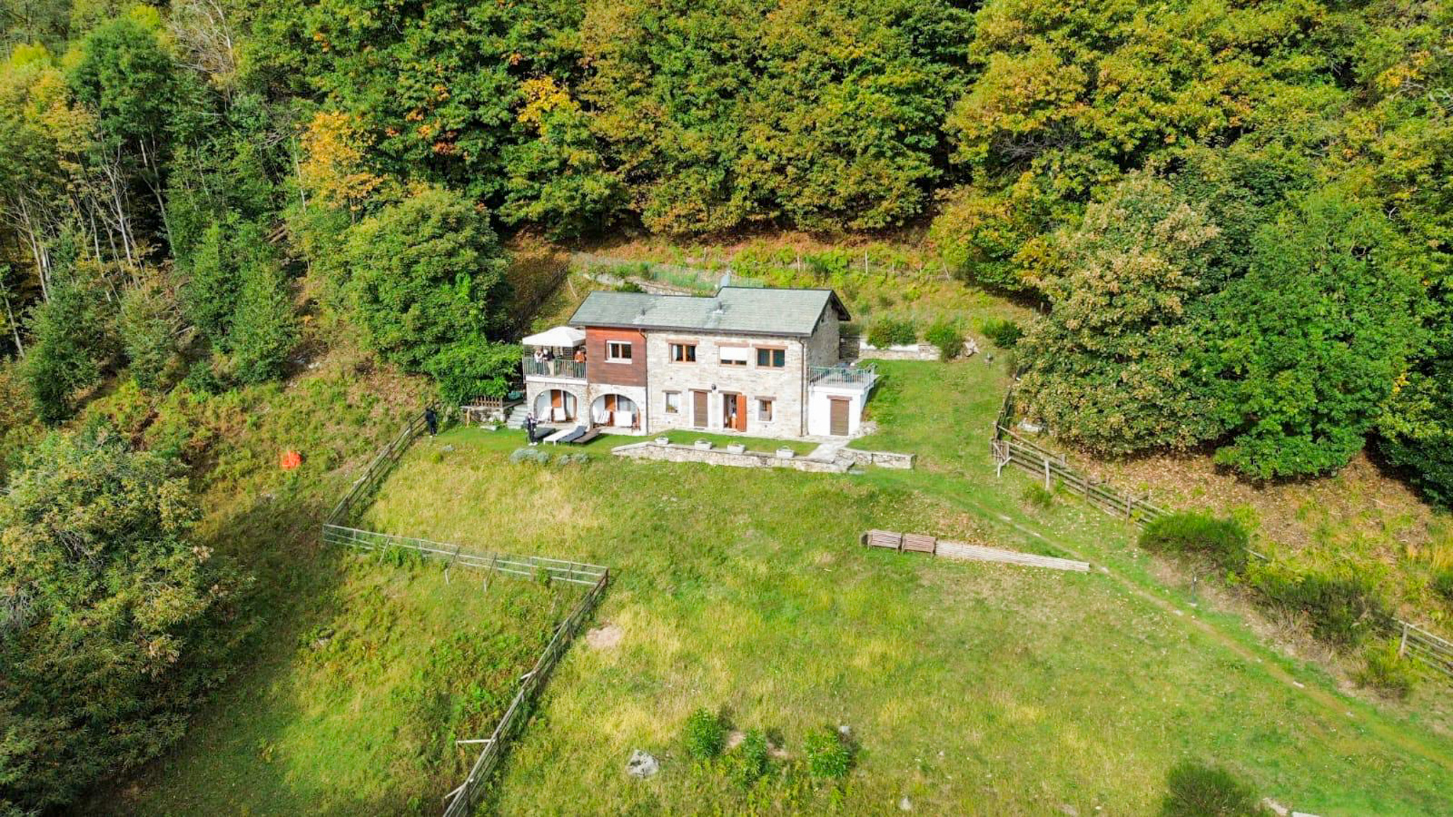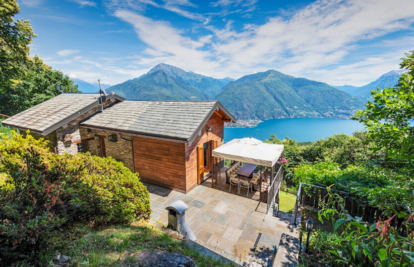 The entire property, including the wooded area, covers approximately 7,000 square meters with total privacy and a picture-postcard view of the lake. The property is accessed via a convenient road and there is an uncovered parking area. It would also be possible to build a garage and a panoramic swimming pool.