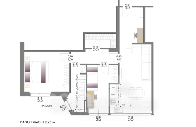 Molto funzionale il box, che può essere acquistato in aggiunta all’appartamento al prezzo di Euro 40.000.