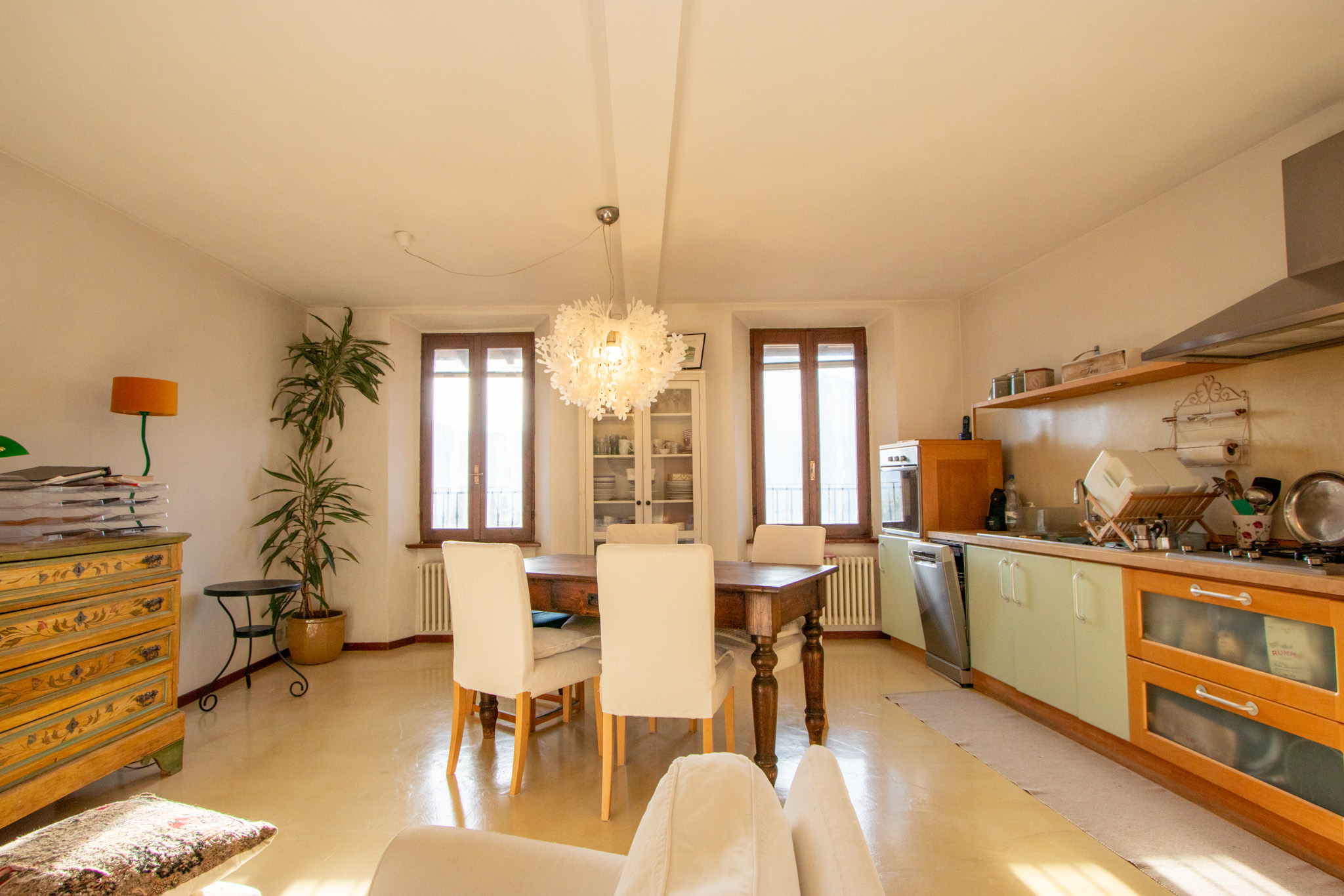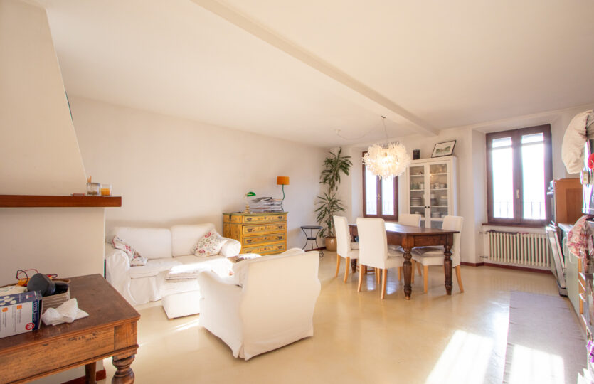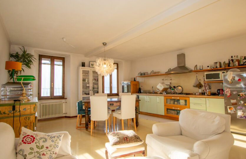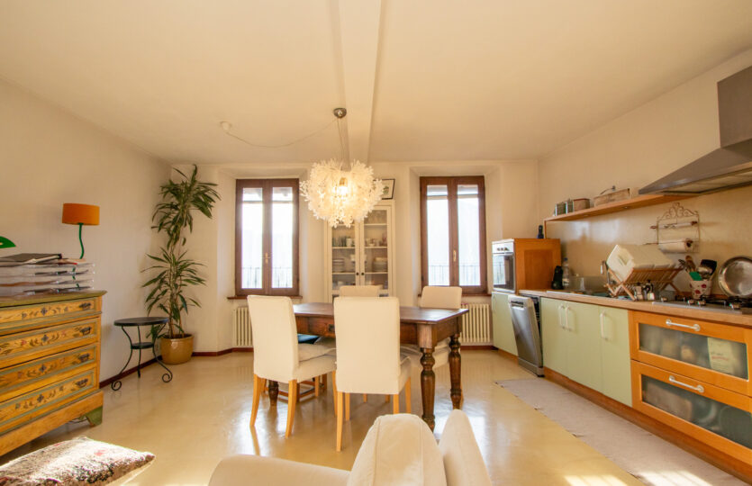 L’appartamento si trova in casa di sole 2 unità abitative ed è privo di spese condominiali annuali, completamente indipendente. Ha una superficie di circa 100 mq commerciali ed è composto da: grande disimpegno,  ingresso, soggiorno con camino, cucina a vista, 2 camere matrimoniali e bagno, inoltre ripostiglio e intero sottotetto di proprietà. Incluso nel prezzo anche parte dell’arredo esistente.