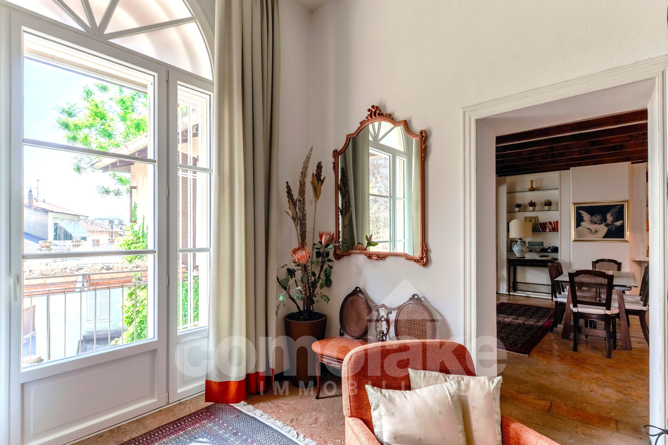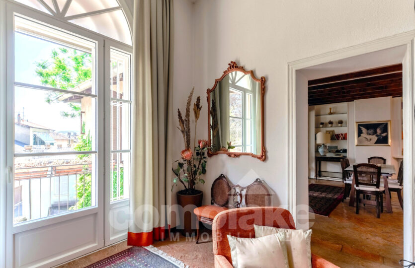 L’appartamento in casa storica con terrazzo e giardino ha una posizione centrale nel paese di Moltrasio a pochi passi dal rinomato hotel villa Passalacqua e dalla riva del lago. La casa risalente al secolo scorso ha caratteristiche originali con i soffitti alti, i pavimenti in cotto lombardo e i muri in pietra di Moltrasio.