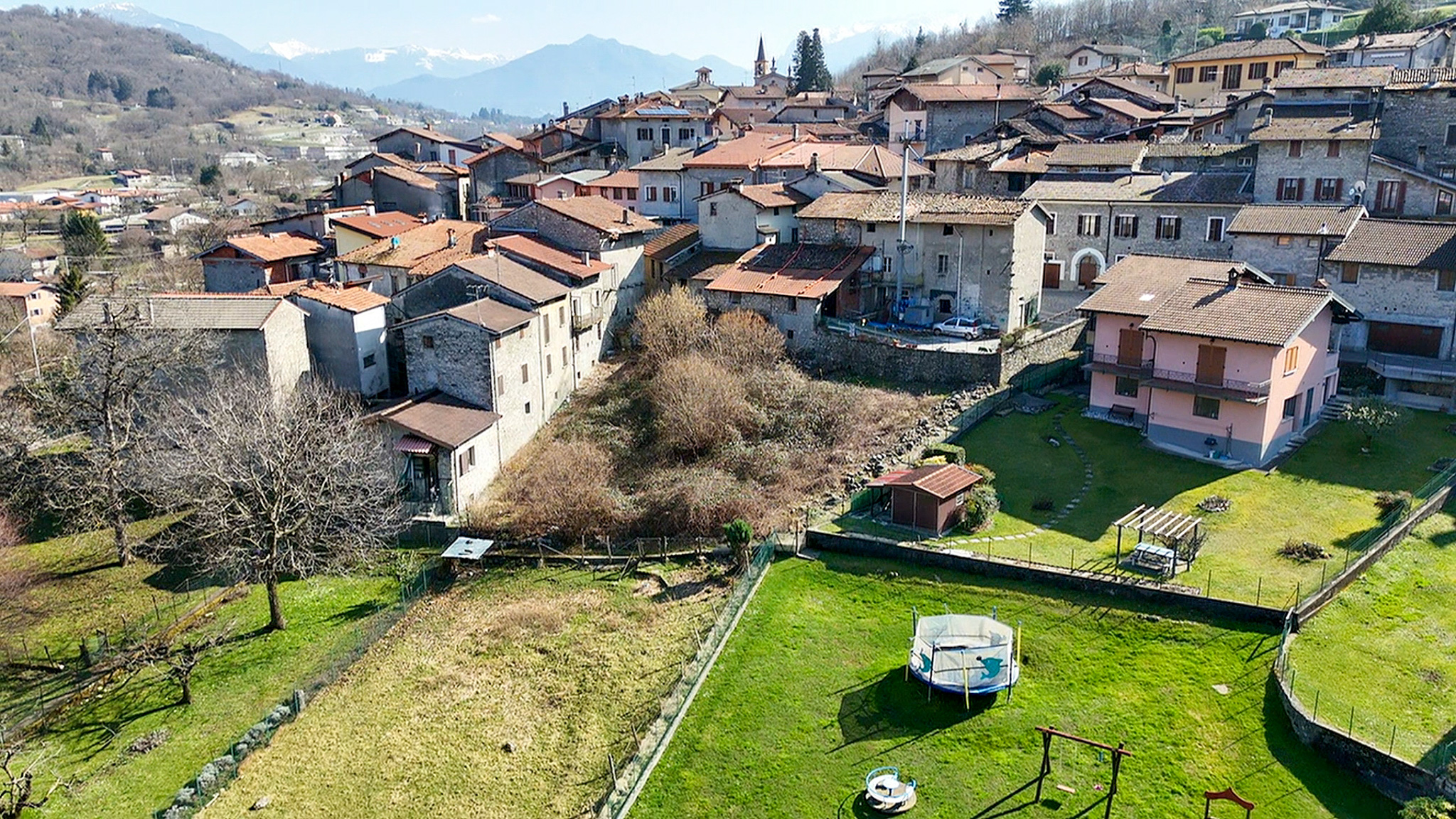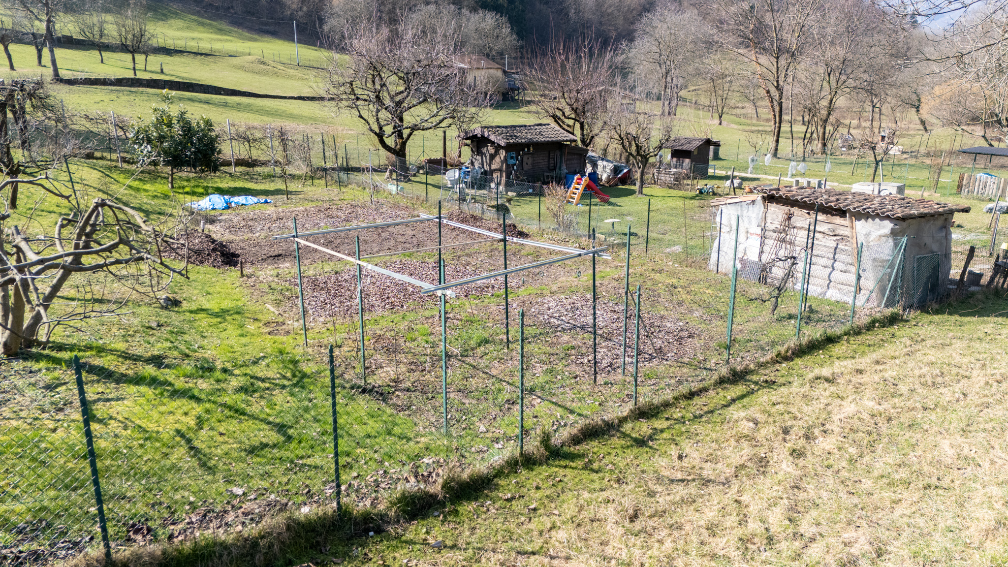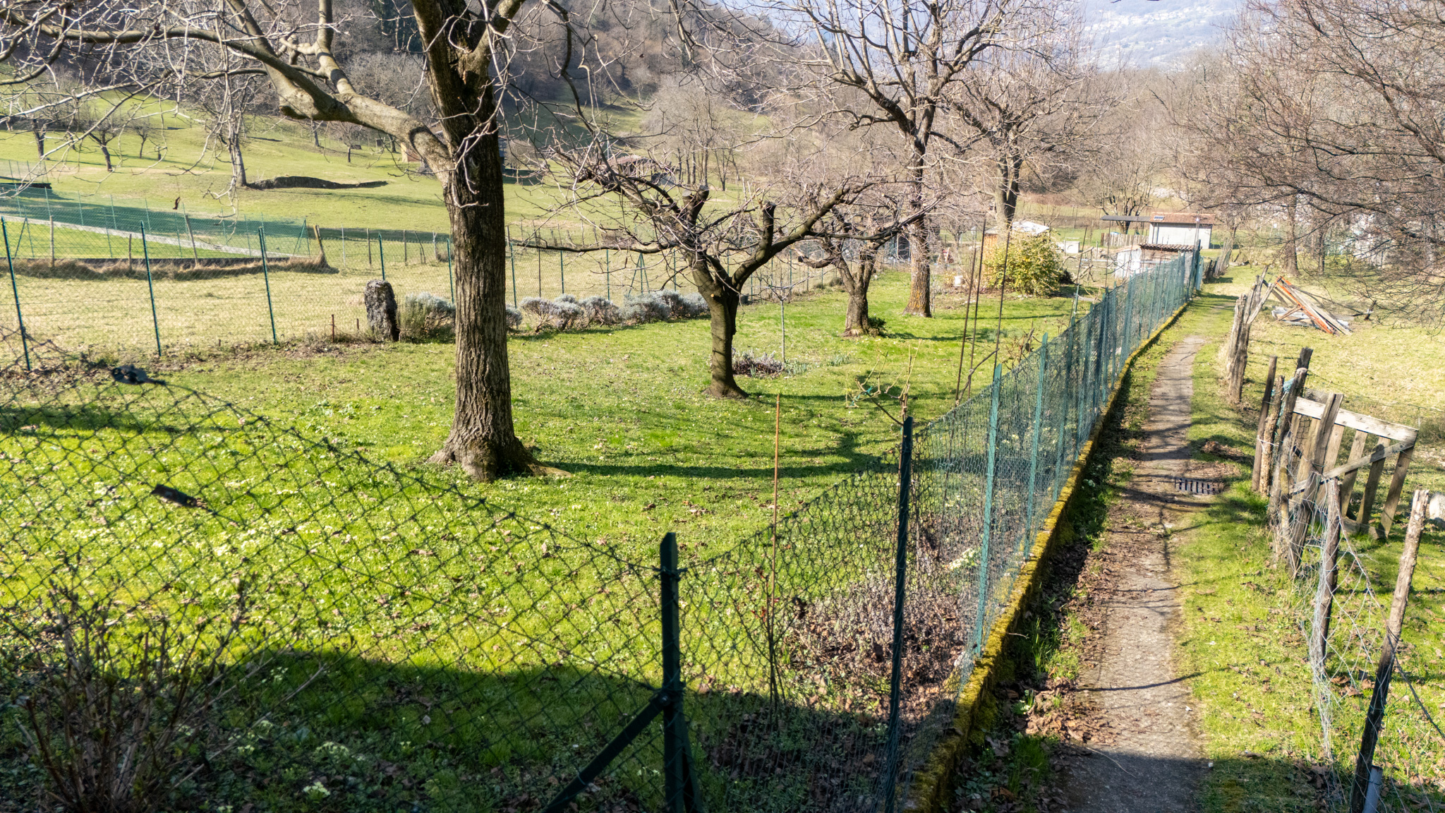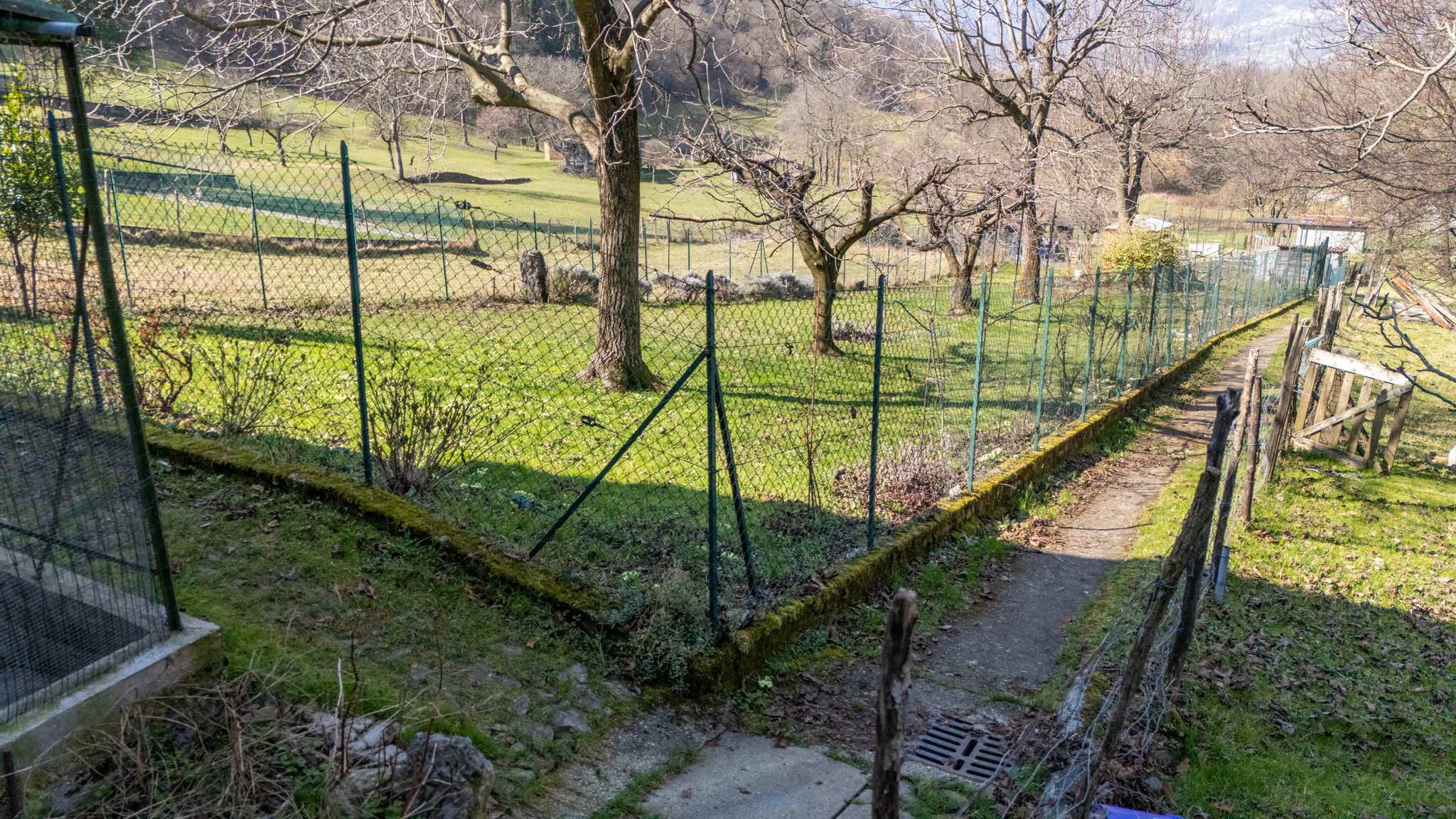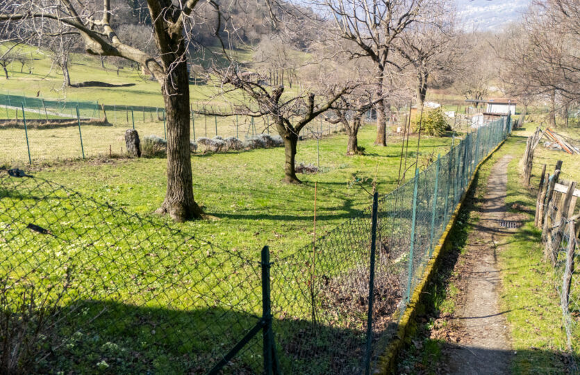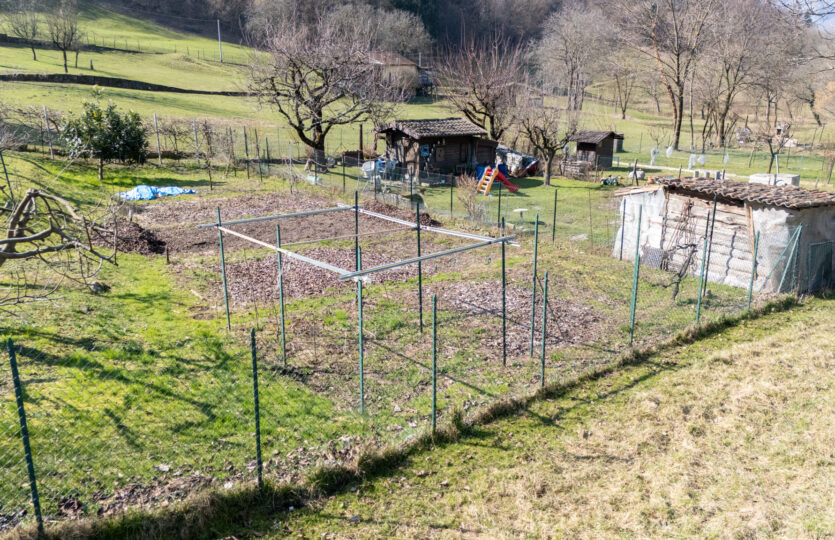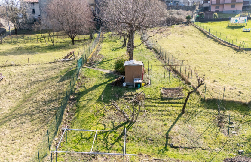 Di fronte alla casa c’è un piccolo giardino che potrebbe essere trasformato in un parcheggio per una macchina di medie dimensioni. A pochi metri di distanza dalla casa troviamo un grande giardino di mq 900 recintato e ben curato, con alberi da frutto, soleggiato da mattina a sera, con una casetta di legno per gli attrezzi.