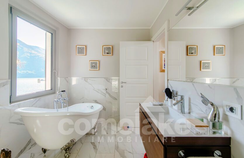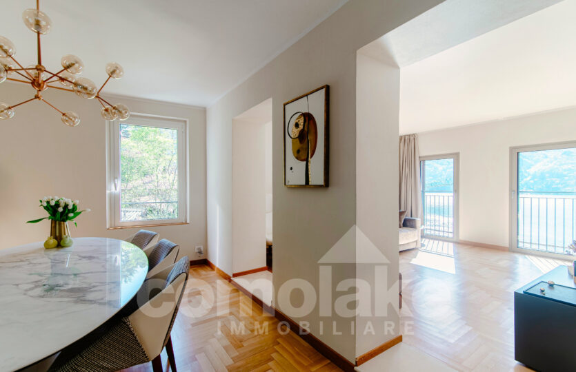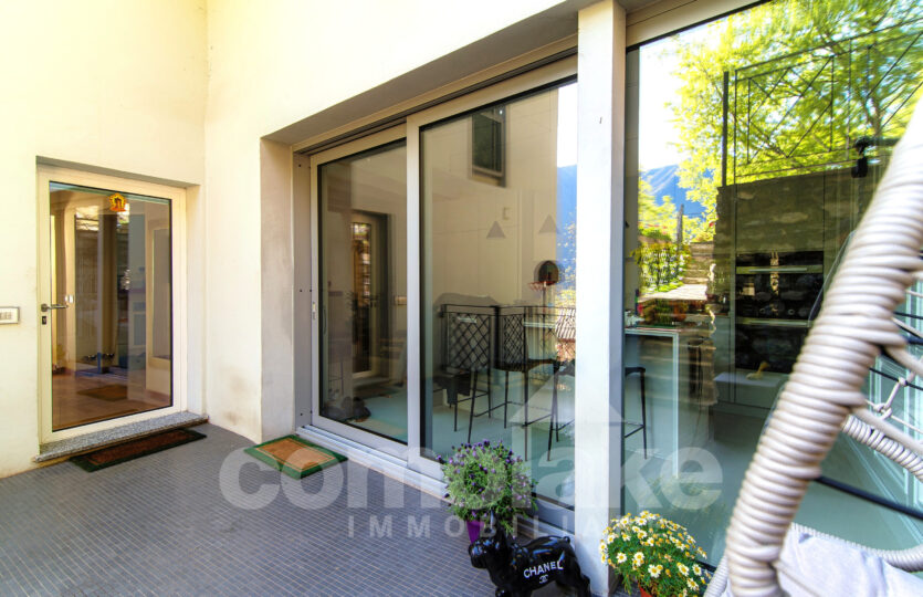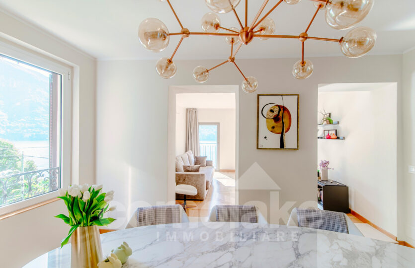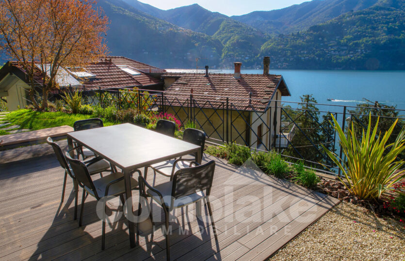 Recentemente rinnovata con particolare attenzione ai dettagli architettonici, la casa è stata riprogettata per offrire spazi moderni, funzionali e perfettamente integrati con l’ambiente circostante. Ogni ambiente valorizza la vista sul lago e garantisce un facile accesso al giardino, in particolare dalla zona giorno. L’ingresso all’abitazione avviene attraverso un viale pedonale tranquillo, e in pochi minuti si raggiunge il centro del paese, dove si trovano i principali servizi: farmacia, minimarket, banca, edicola e ristoranti.