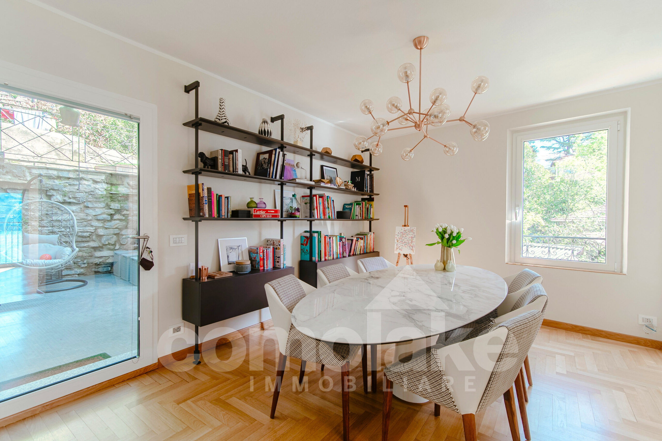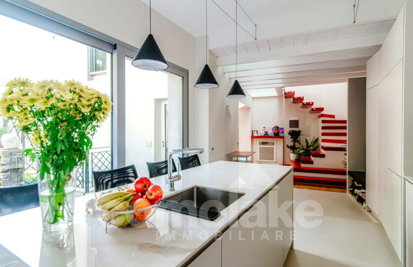 All’interno, la casa di lago con giardino e vista lago a Carate Urio accoglie con un ampio living, caratterizzato da grandi vetrate nella zona cucina e pranzo, che si affacciano direttamente sul giardino. Il soggiorno, luminoso e spazioso, regala una vista incantevole sul lago. Una scala moderna conduce al piano superiore, dove si trovano due camere da letto e due bagni. Le finiture sono state scelte con grande cura: i pavimenti in parquet, posati in modo tradizionale, rendono gli ambienti caldi e accoglienti. Gli arredi su misura, moderni e di alta qualità, completano con eleganza ogni spazio. Il progetto di ristrutturazione ha saputo coniugare modernità e rispetto per il contesto, valorizzando al meglio le vedute e gli spazi, e creando un’atmosfera rilassante e raffinata.