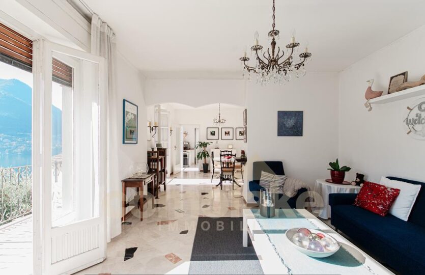 Al piano primo si sviluppa la zona giorno dell’appartamento principale, ampio e luminosissimo con ampie vetrate che affacciano sul terrazzo da cui si gode una meravigliosa vista sul lago.