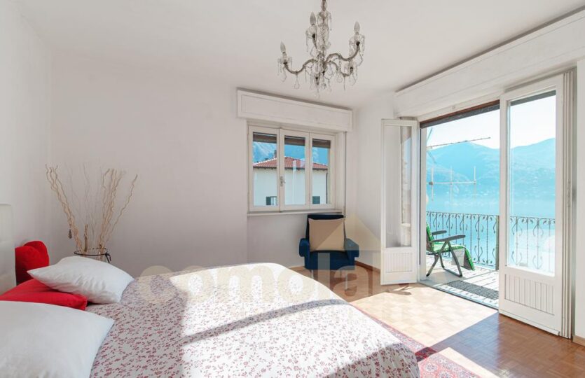 Gli ambienti sono alti e la zona living è aperta collegata al giardino. Una scala conduce al piano notte attualmente organizzato con un’ampia camera matrimoniale con terrazzo vista lago, una camera adibita a guardaroba e possibilità di realizzo della seconda camera.