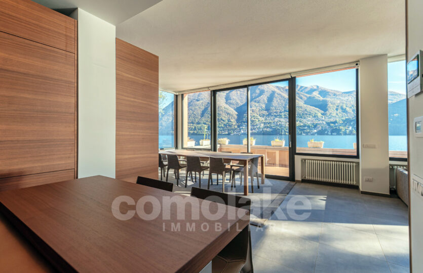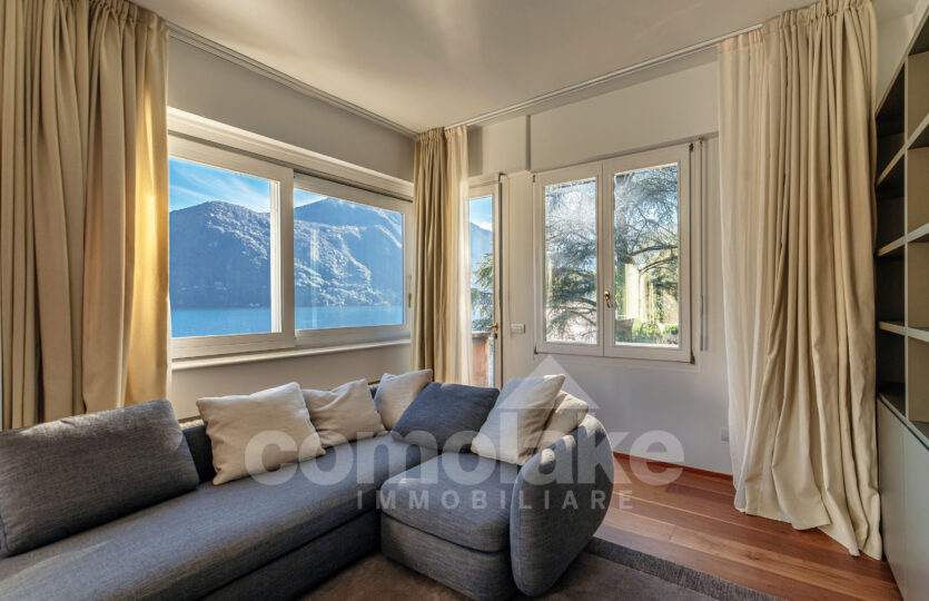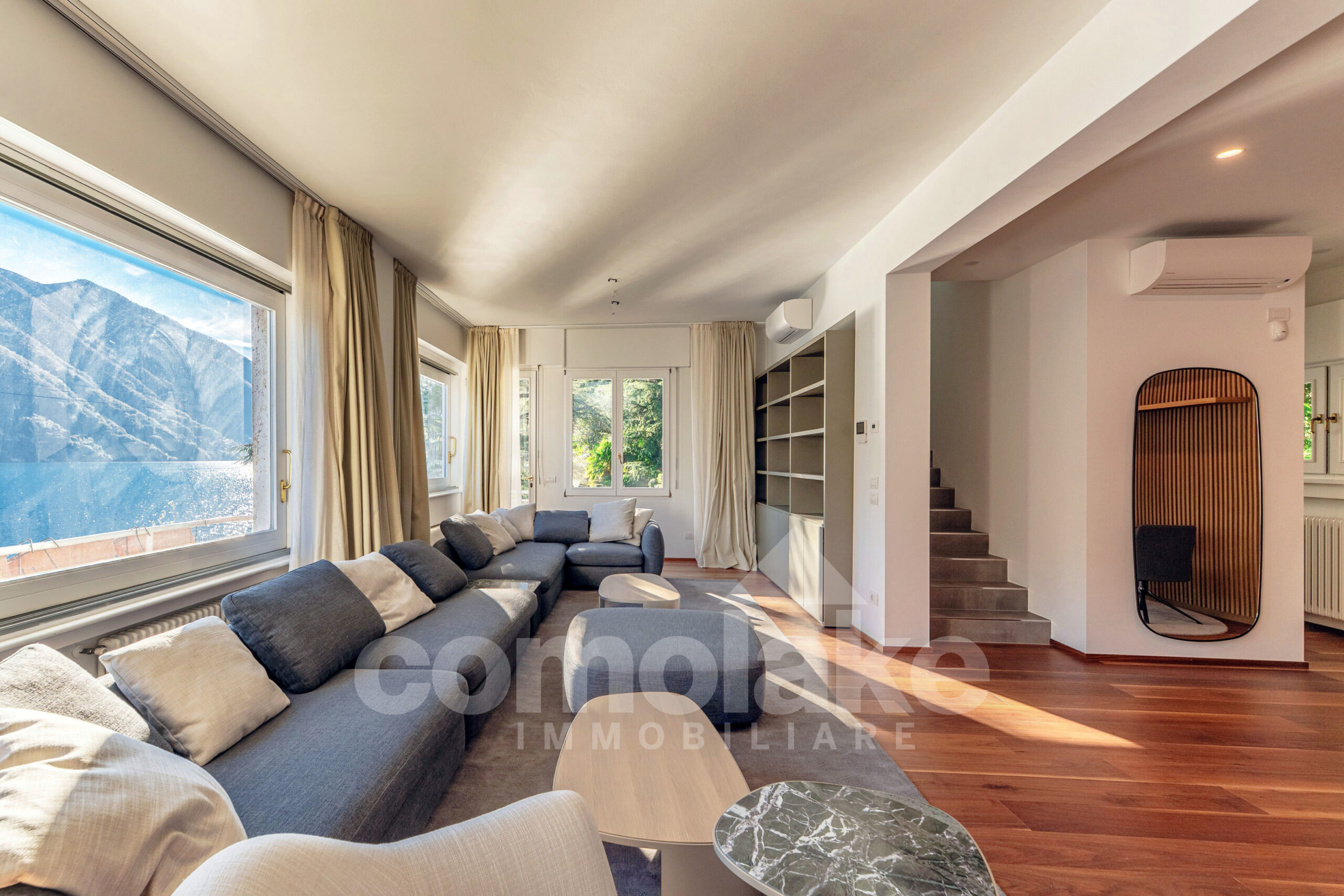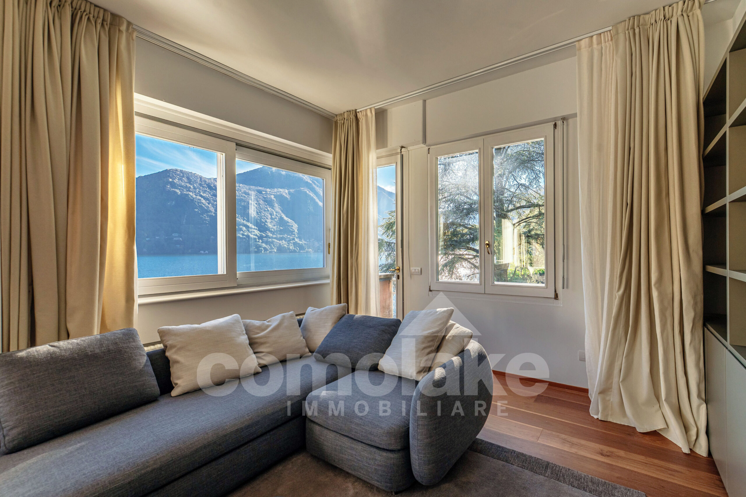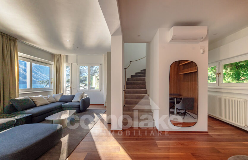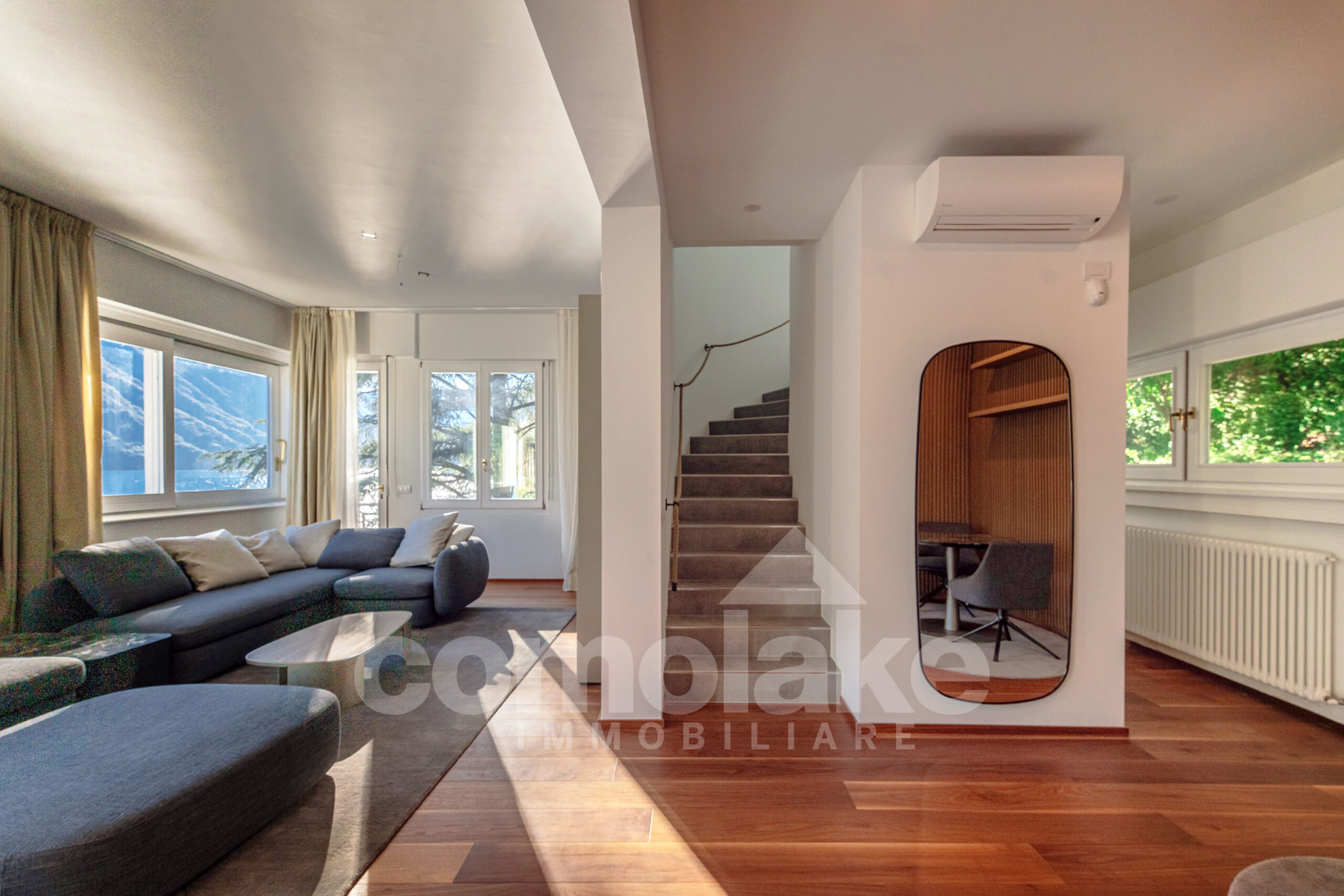 La villa moderna a lago con ampio giardino è stata oggetto di una ristrutturazione recente, che ne ha valorizzato l’architettura originale degli anni ‘60. Ampie vetrate nella zona living si aprono direttamente sul lago e si collegano al giardino, dove sono stati realizzati degli spazi godibili e funzionali dedicati al relax e una moderna are barbecue, ideale per cene e pranzi con gli amici. La zona giorno, arredata su misura con elementi di design Poliform, unisce eleganza e comfort. Un ampio spazio relax con divani accoglienti consente di vivere appieno la villa anche nei mesi invernali, mantenendo sempre un contatto visivo con il paesaggio circostante. I due livelli superiori godono di una magnifica vista panoramica sul lago, grazie alle ampie vetrate che la caratterizzano.