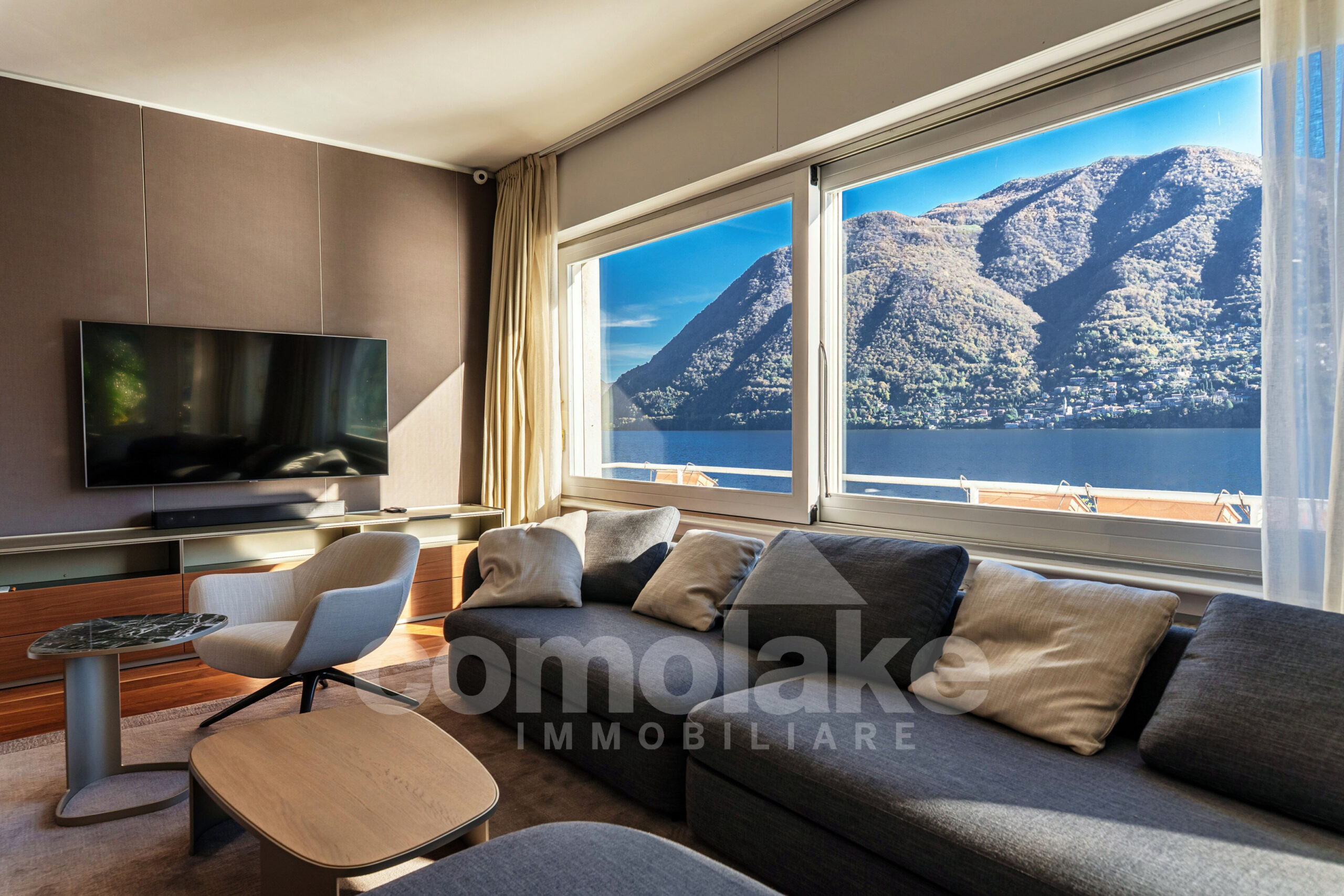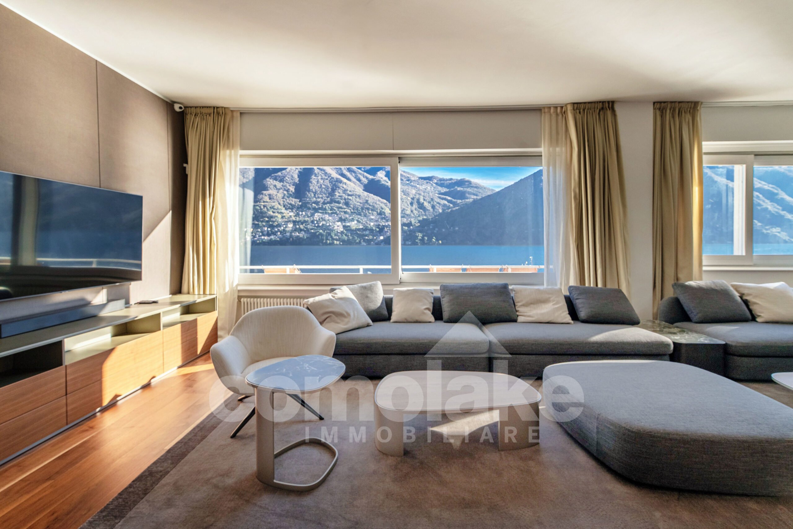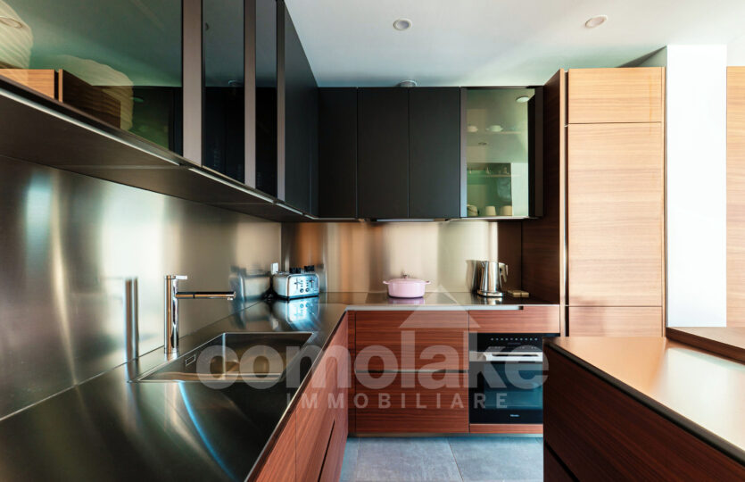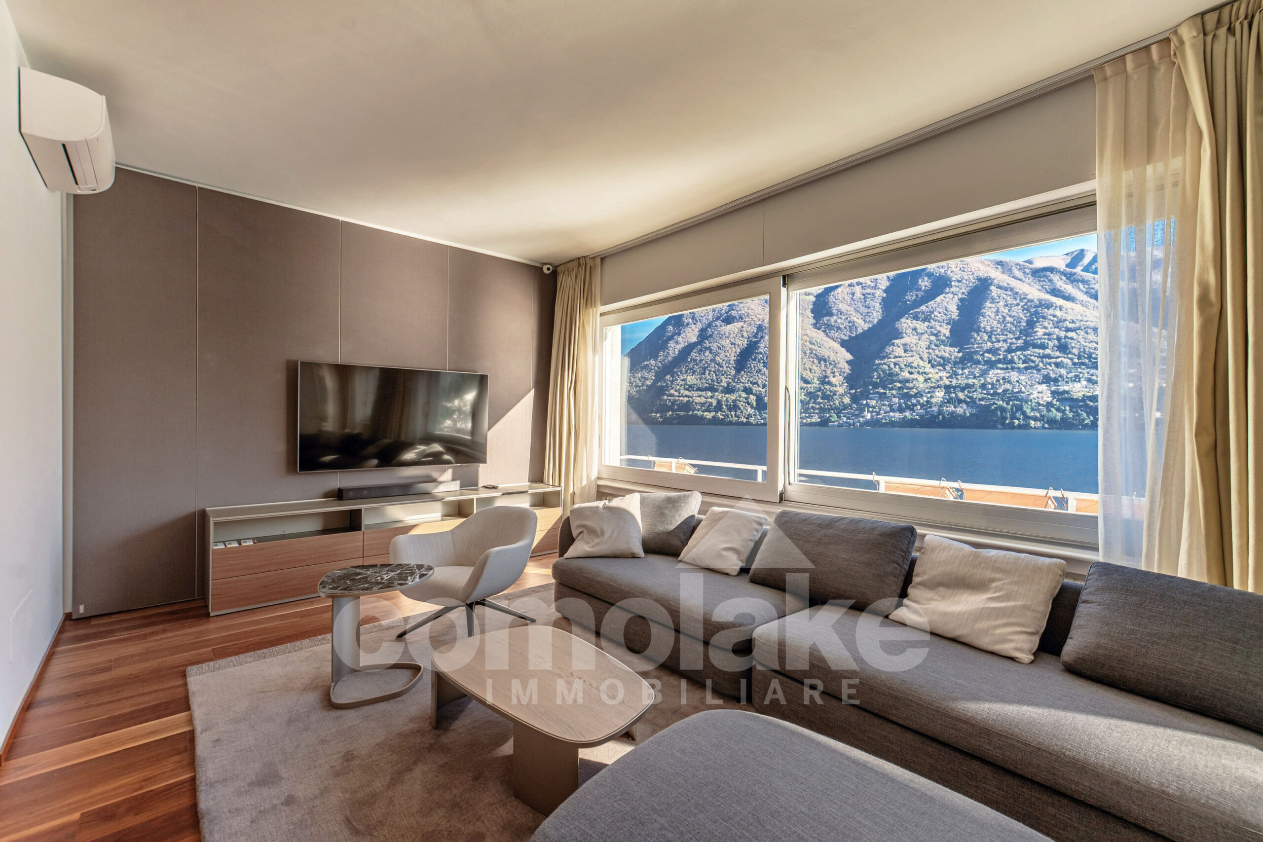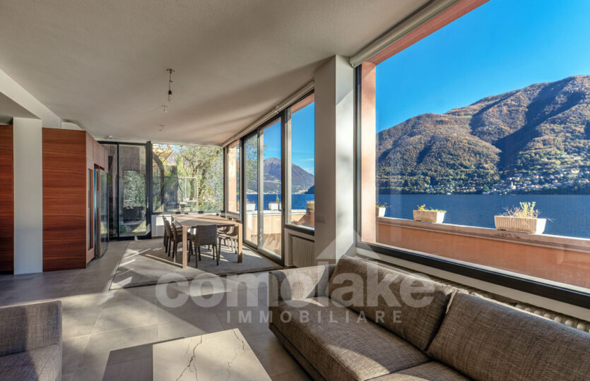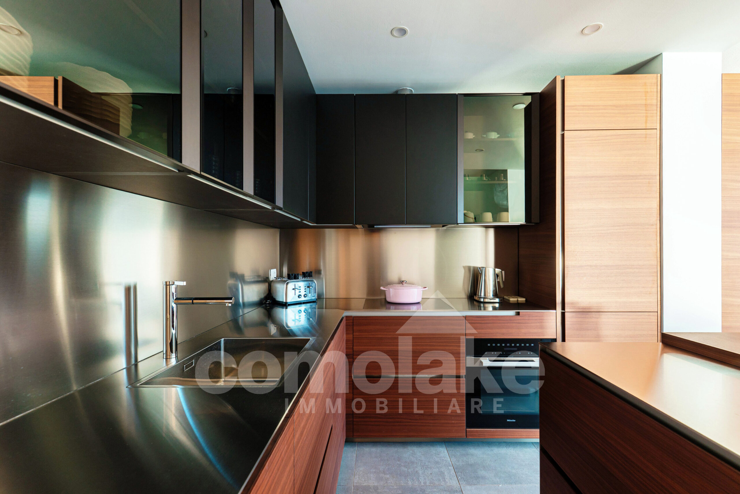 La villa moderna a lago con ampio giardino è stata oggetto di una ristrutturazione recente, che ne ha valorizzato l’architettura originale degli anni ‘60. Ampie vetrate nella zona living si aprono direttamente sul lago e si collegano al giardino, dove sono stati realizzati degli spazi godibili e funzionali dedicati al relax e una moderna are barbecue, ideale per cene e pranzi con gli amici. La zona giorno, arredata su misura con elementi di design Poliform, unisce eleganza e comfort. Un ampio spazio relax con divani accoglienti consente di vivere appieno la villa anche nei mesi invernali, mantenendo sempre un contatto visivo con il paesaggio circostante. I due livelli superiori godono di una magnifica vista panoramica sul lago, grazie alle ampie vetrate che la caratterizzano.