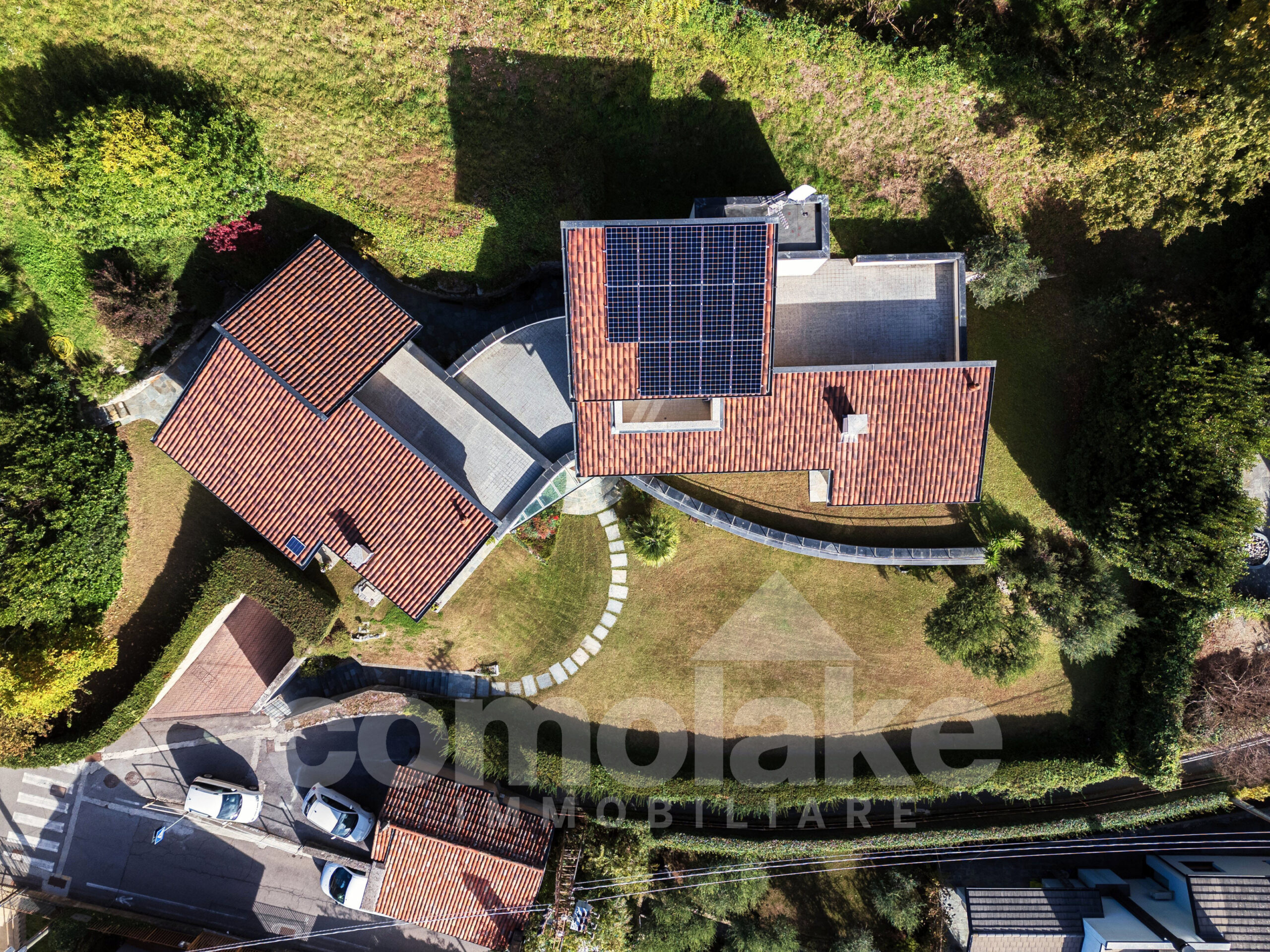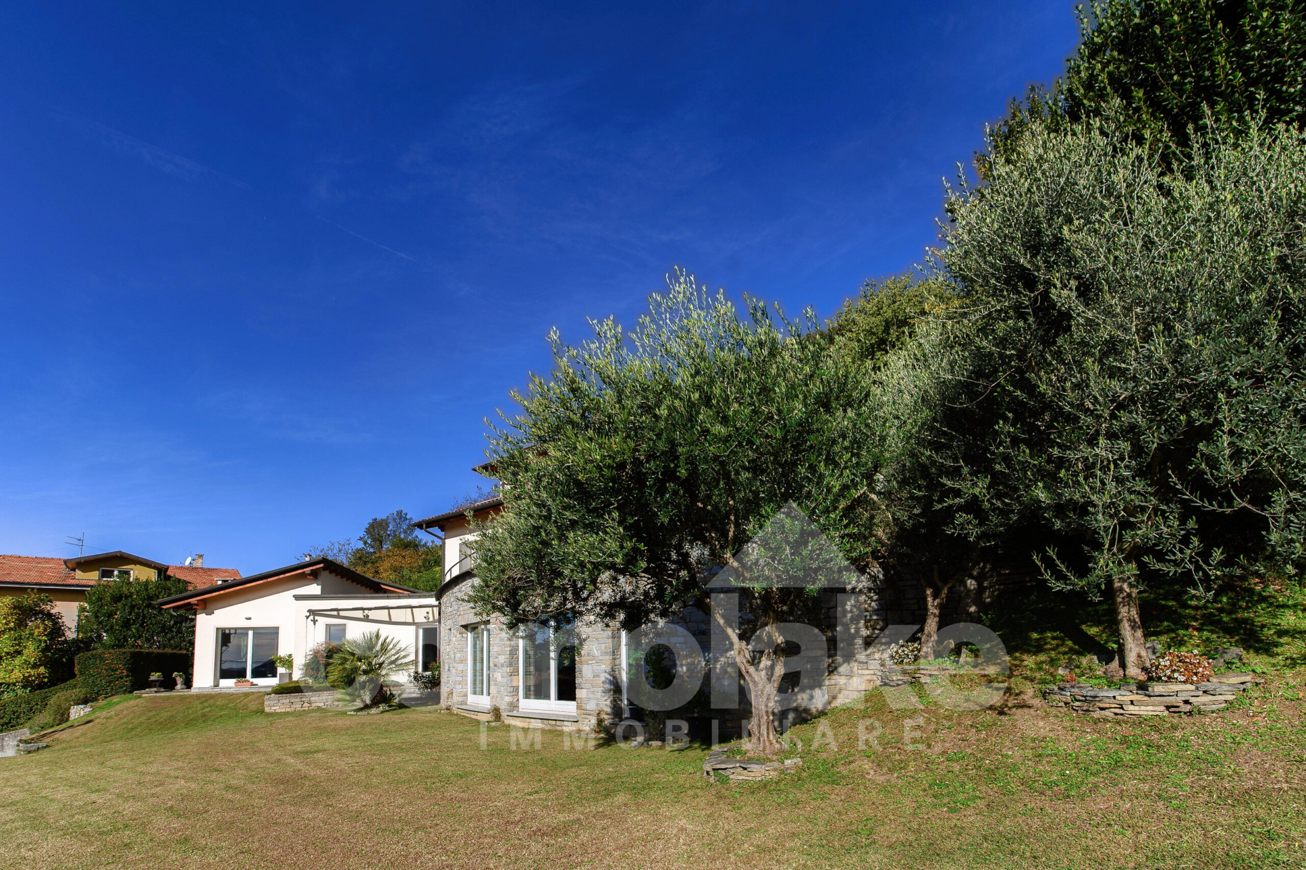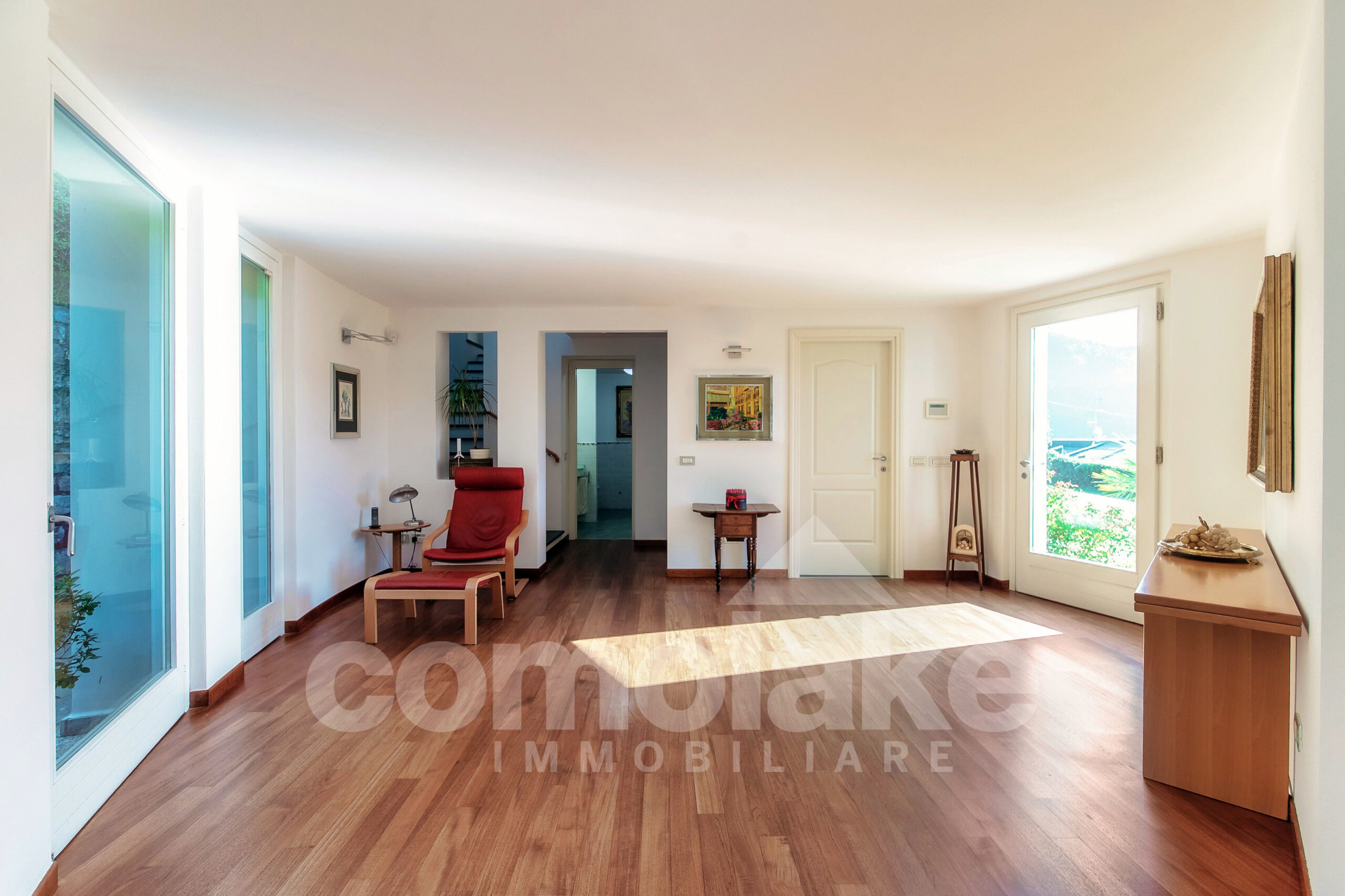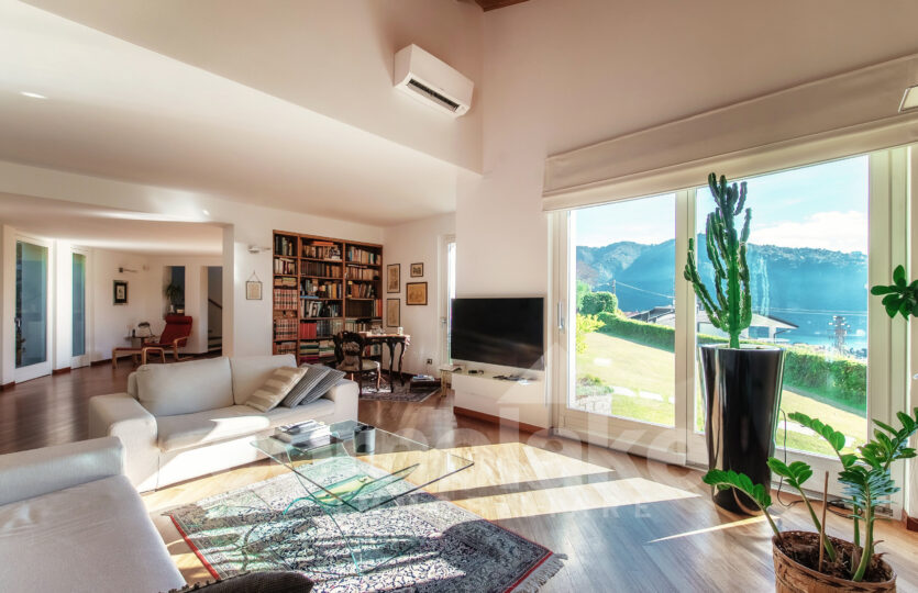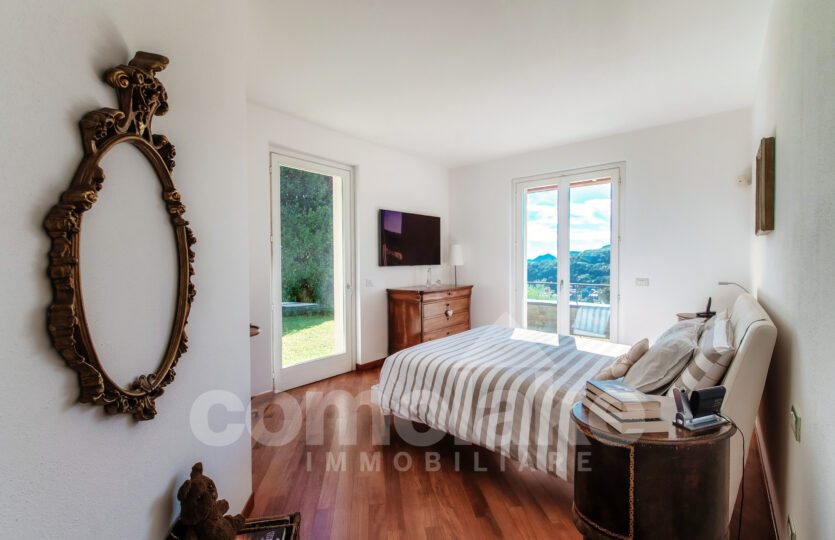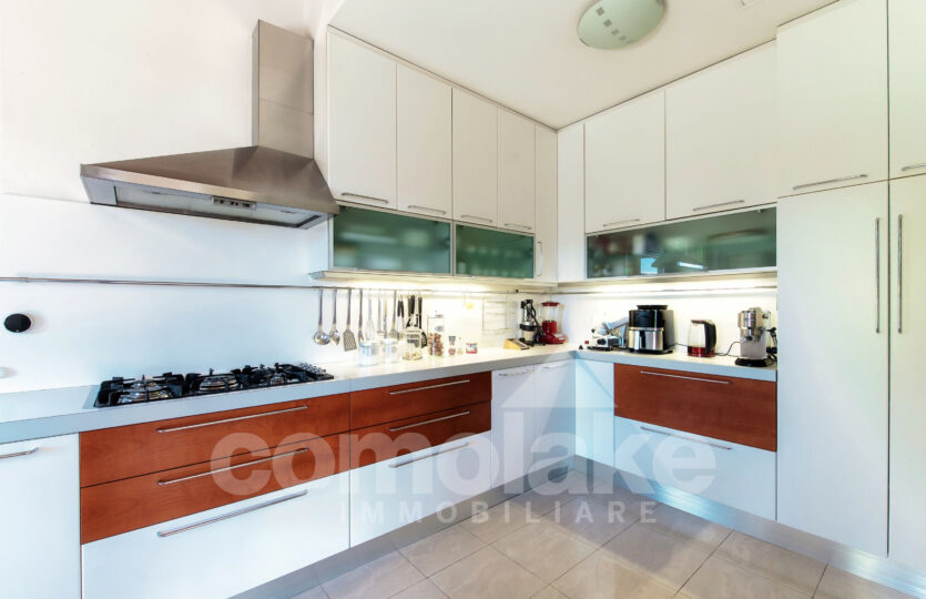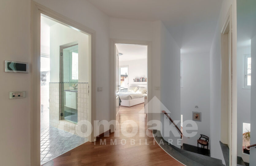 Progettata in chiave moderna e funzionale, la villa interpreta in modo contemporaneo lo stile classico delle dimore del lago. Le murature in pietra, le grandi finestre con persiane a battente e i pavimenti in parquet pregiato conferiscono alla casa un’eleganza accogliente. Al piano terra della villa moderna con giardino e vista lago si accede attraverso l’ingresso pedonale che introduce nel curato giardino pianeggiante. Su questo livello si trovano un ampio soggiorno con zona pranzo, una spaziosa cucina abitabile e un luminoso ambiente dedicato ad hobby e svago, ideale anche come area fitness o come unità indipendente per gli ospiti. Completa il piano una lavanderia pratica e ben organizzata. Una comoda scala conduce al livello superiore, dove si sviluppano tre camere con bagno, tra cui una suite con bagno privato e cabina armadio. All’ultimo piano si apre una raffinata camera matrimoniale con bagno en suite, intima e accogliente, dalla quale si accede a un’area privata del giardino con vista suggestiva sul primo bacino del lago. Al piano interrato un’ampia autorimessa ospita comodamente fino a cinque auto, con accesso diretto dalla strada principale.