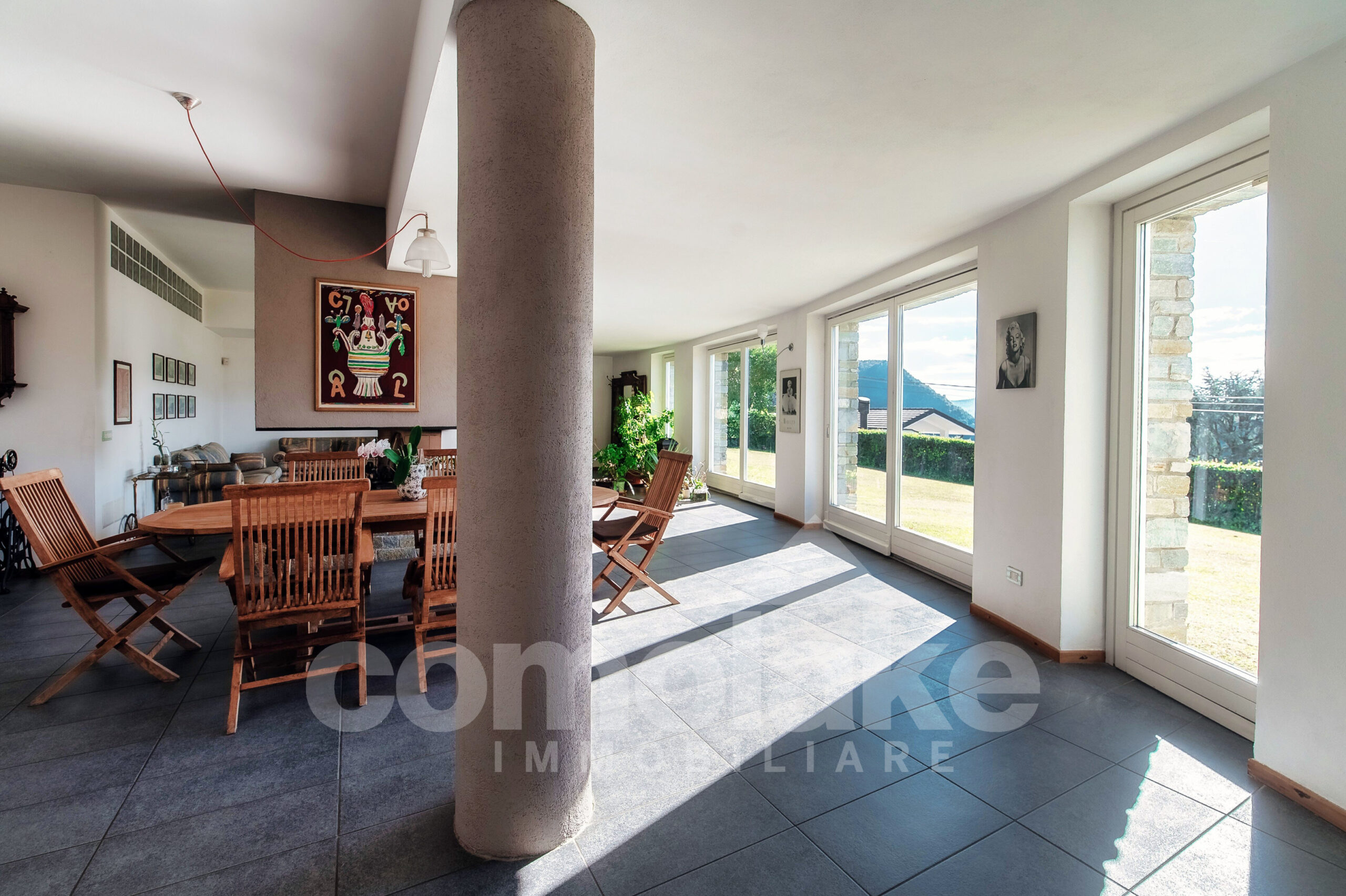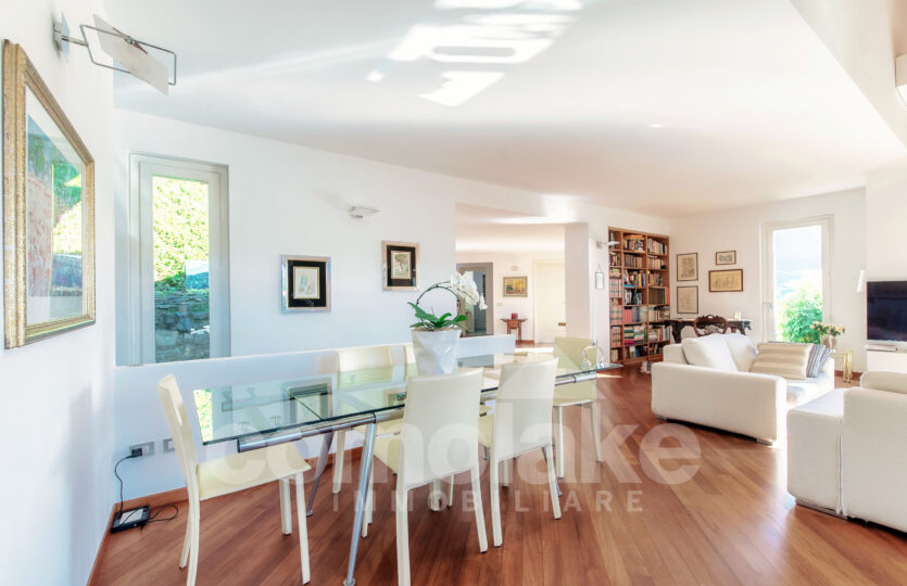 La villa moderna con giardino e vista lago gode di una posizione riservata e strategica, che permette di raggiungere in pochi minuti il centro di Cernobbio e le principali vie di collegamento. L’esposizione ottimale e le ampie vetrate che la caratterizzano valorizzano la luminosità degli ambienti e il dialogo continuo con il paesaggio. Gli spazi della zona giorno, aperti e ariosi, si distinguono per le doppie altezze del living che accoglie all’ingresso, dove un elegante camino crea un’atmosfera calda e rilassata mentre lo sguardo si perde nella splendida vista sul lago.