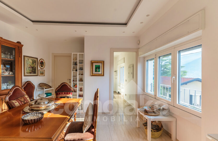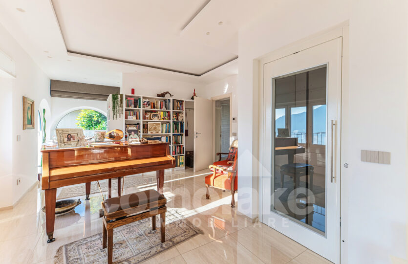 La villa moderna con vista lago ha una posizione esclusiva nel centro di Moltrasio. Molto comoda per raggiungere a piedi il centro del paese e la riva del lago o per raggiungere in auto l’autostrada in pochi minuti. Un’accurata ristrutturazione della proprietà la rende un’abitazione unica nella zona con impianti di ultima generazione e finiture signorili. Il progetto ha saputo valorizzare l’abitazione dallo stile classico con tutti i comfort di una villa moderna. Impianti all’avanguardia, l’ascensore che direttamente dal box conduce alla zona giorno e locali accessori molto funzionali all’abitazione. Oltre ad avere una magnifica vista sul lago, tutti gli ambienti sono molto luminosi con finiture signorili e materiali che rispecchiano il gusto moderno del progetto architettonico con tonalità chiare e luminose anche negli arredi su misura. Ampie vetrate e un living aperto rendono la zona giorno molto confortevole. Una zona studio è stata ricavata nel soggiorno disimpegnandolo con moderni arredi su misura. Dalla cucina realizzata su misura si accede ad un piccolo giardino ideale per momenti di relax e un comodo bagno serve tutta la zona giorno. Con una scala in pietra di Moltrasio e con l’ascensore si raggiunge la zona notte dove sono state realizzate due camere, un ampio bagno e un magnifico terrazzo con vista impagabile sul lago.
