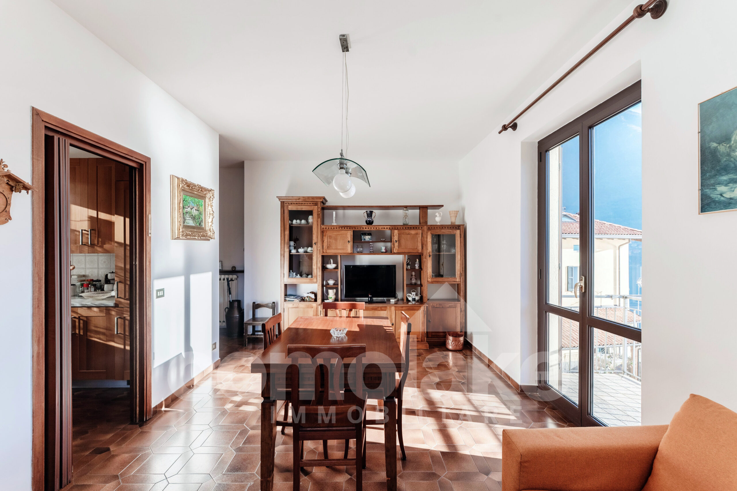 L’abitazione si presenta in ordine ed è abitabile con una distribuzione tradizionale degli spazi: un luminoso soggiorno con terrazzo vista lago e la cucina disimpegnata, un comodo bagno e due camere. Dall’abitazione si gode una vista meravigliosa e gli spazi sono ben distribuiti.